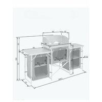 Туристическая кухня для кемпинга представляет собой компактное и функциональное решение для приготовления пищи на открытом воздухе. Изготовленная из анодированного алюминия, она обеспечивает прочность и надежность в условиях похода. Конструкция кухни состоит из круглой трубы диаметром 19-22 мм, имеющей центральную подвижную столешницу с боковыми отсеками и тканевыми шкафами для хранения. Такой дизайн обеспечивает удобное размещение посуды, продуктов и других кухонных принадлежностей. Столешница туристической кухни оснащена ветрозащитной панелью, которая защищает от потери тепла и обеспечивает эффективное использование газовой плиты. Регулируемые по высоте ножки позволяют устранить небольшие неровности на поверхности и обеспечивают стабильность конструкции. Диапазон регулировки ножек составляет до 1,5 см, что позволяет адаптировать кухню под любые условия территории. Благодаря складной конструкции и весу всего 10 кг, данную кухню легко собрать и транспортировать. В комплект поставки входит удобная сумка-чехол с ручками, что облегчает переноску и хранение кухни. При размерах в собранном виде 79х49х15 см, она легко помещается в багажник автомобиля или палатку, не занимая много места. Обеспечивая комфортное приготовление пищи и организацию кухонного пространства, туристическая походная кухня станет незаменимым помощником для любителей активного отдыха на природе. Ее прочный материал и стильный дизайн удовлетворят запросы даже самых требовательных клиентов, гарантируя при этом безопасность и удобство использования.
