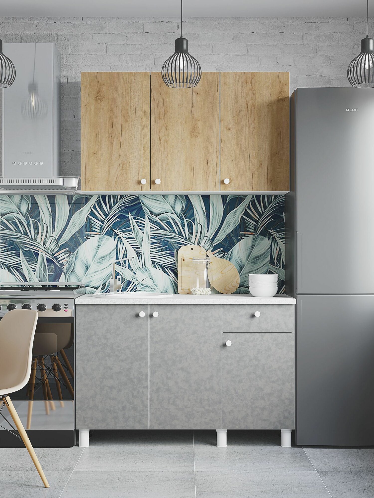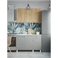 Каркас выполнен из ЛДСП белого цвета, фасады ЛДСП Дуб крафт золотой/Бетон. Столешница входит в стоимость. Сушилка для посуды, мойка, плинтус, стеновая панель приобретается дополнительно.