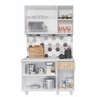 Кухонный гарнитур состоит из стола шириной 1200 мм, он поделен на 2 части - шириной 80 см с двумя дверками и шириной 40 см с ящиком и дверью. В гарнитур также входит верхний шкаф общей шириной 1200 мм, разделен на два отделения 80 и 40 см.