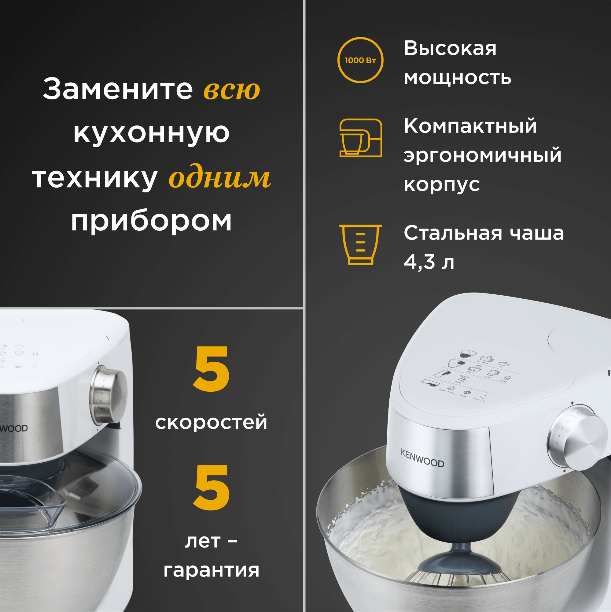 | Дополнительная информация | плавная регулировка скорости, защитная блокировка двигателя, интуитивное поднятие верхней части машины, планетарное движение насадок, защитная крышка от брызг, объем блендера 1.2 л, чаша с мерной шкалой, отсек для кабеля, 3 привода, детали можно мыть в посудомоечной машине |
