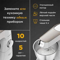 | Подробная комплектация | К-битер, Венчик, Крюк для теста, Кожух для защиты от брызг, Инструкция |