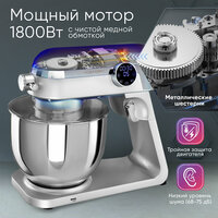 Многофункциональная кухонная машина – планетарный миксер для дома Сенсорный LED дисплей управления Индикация работы светодиодная и звуковая Наличие таймера Регулировка времени работы (30 сек — 10 мин) и скорости (1–10) Плавный запуск планетарного вращения Прочный литой алюминиевый корпус Стальной венчик, литые крюк и лопасть для смешивания из металла Чаша 7 л. из нержавеющей пищевой стали SUS304 с крышкой-экраном от брызг и отсеком для добавления продуктов Мощный долговечный двигатель, чистая медная обмотка Надежные цельнометаллические шестерни креплений Низкий уровень шума (68–75 дБ, 1 м) Двойная защита от перегрева и перегрузки Защита от включения при неправильной сборке Защита от поражения электротоком класс I Чашу можно мыть в посудомоечной машине Кухонная машина 4 в 1: дополнительные насадки — овощерезка IKM-S01, мясорубка с насадкой для колбасок IKM-MG02, насадки для приготовления пасты IKM-PM03 – можно приобрести отдельно