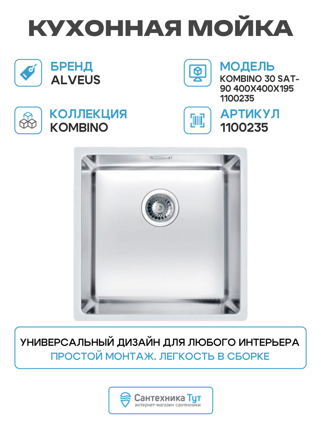 Кухонная мойка Alveus Kombino 30 SAT-90 400x400x195 1100235 Сатинированная сталь нержавеющая сталь встраиваемый 44: сравнение цен, характеристики, фото, актуальное наличие и цены.