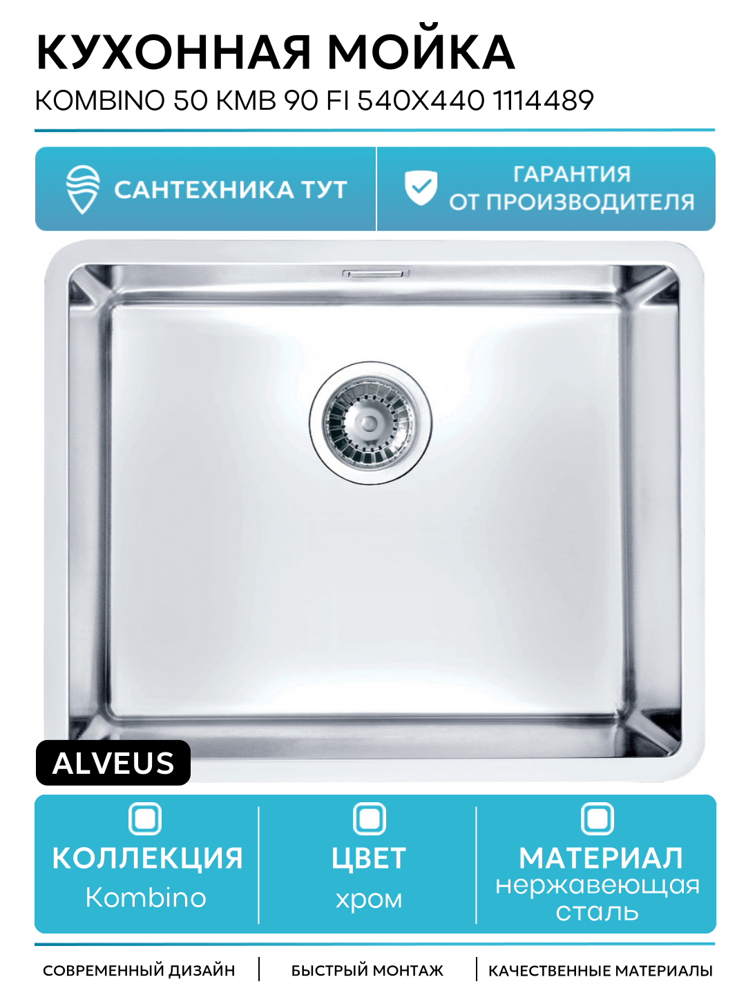 Купить Кухонная мойка Alveus Kombino 50 KMB 90 FI 540×440 1114489 Брашированная сталь нержавеющая сталь встраиваемый 54 с доставкой по всей России.