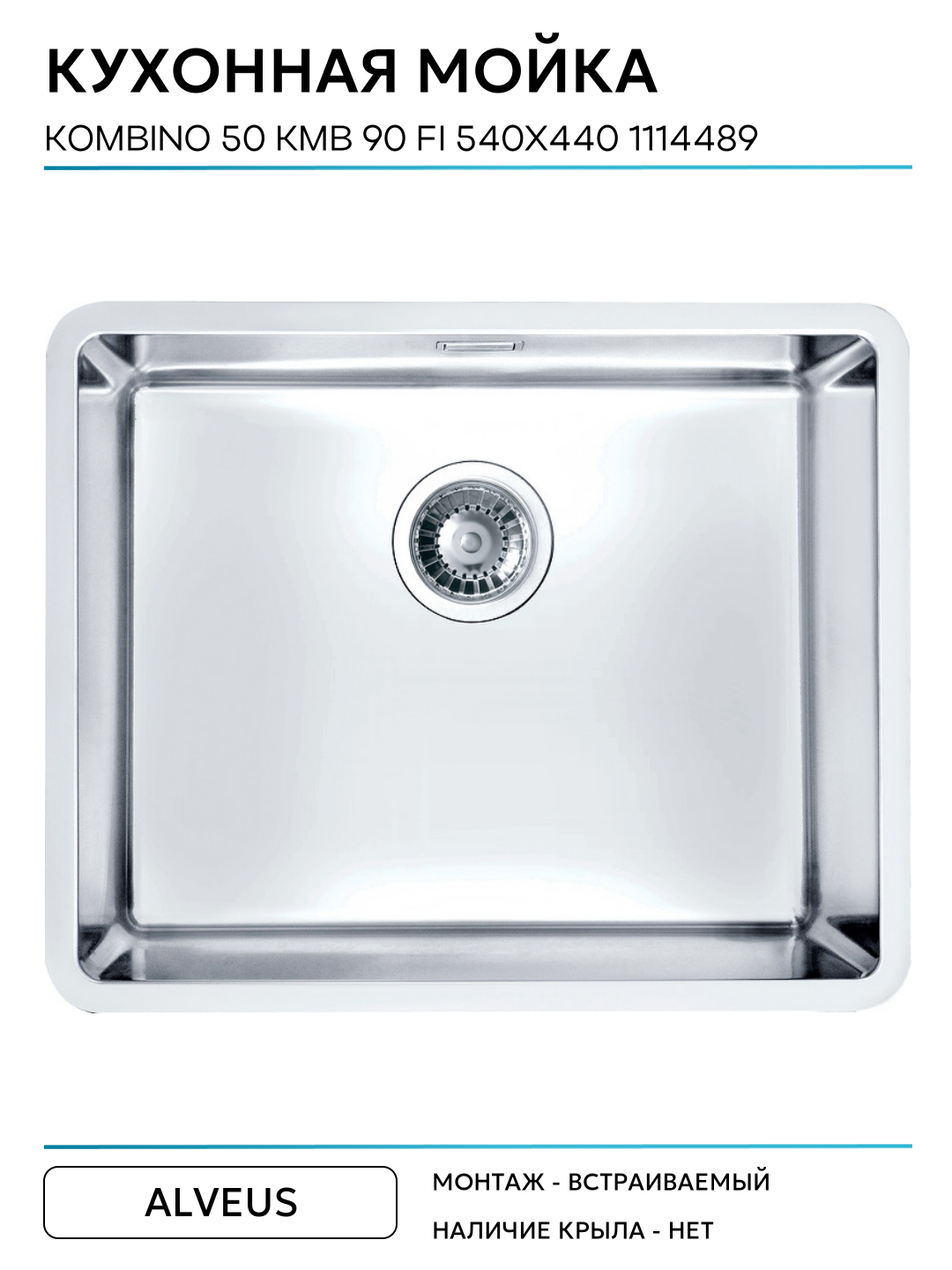 Кухонная мойка Alveus Kombino 50 KMB 90 FI 540×440 1114489 Брашированная сталь нержавеющая сталь встраиваемый 54: сравнение цен, характеристики, фото, актуальное наличие и цены.