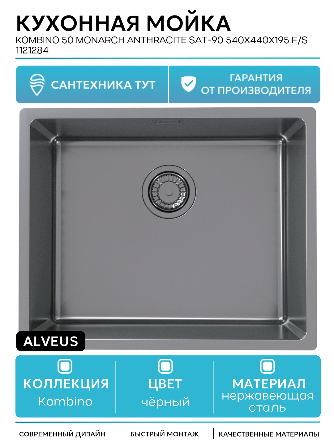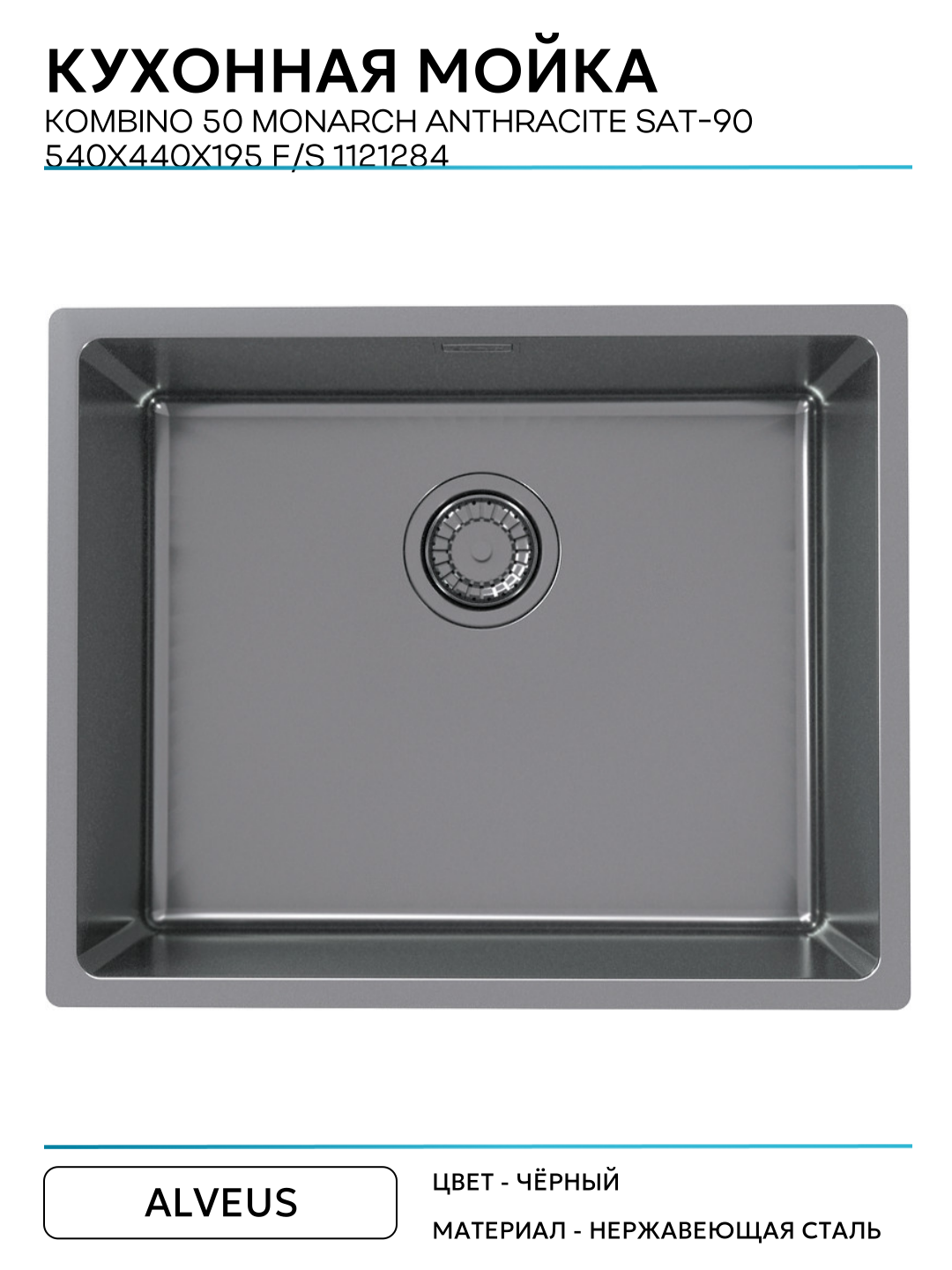 Кухонная мойка Alveus Kombino 50 Monarch Anthracite SAT-90 540x440x195 F/S 1121284 Антрацит нержавеющая сталь встраиваемый 54, современный стиль: сравнение цен, характеристики, фото, актуальное наличие и цены.