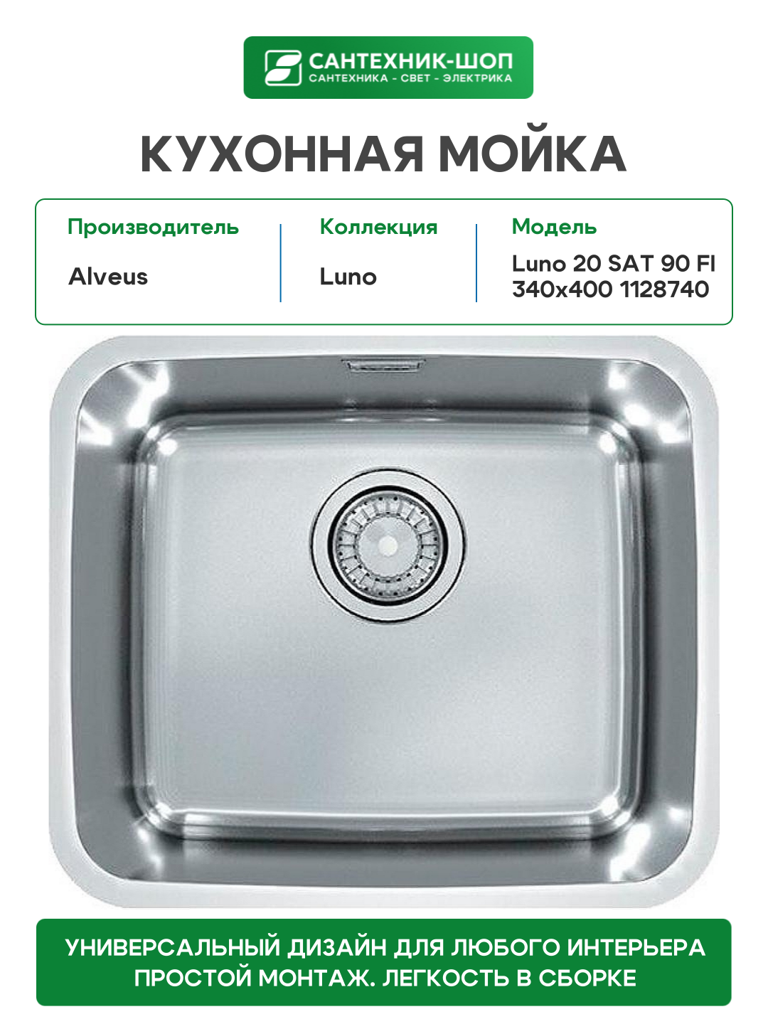 Купить Кухонная мойка Alveus Luno 20 SAT 90 FI 340×400 1128740 Сатинированная сталь нержавеющая сталь встраиваемый с доставкой по всей России. Кухонная мойка Alveus Luno 20 SAT 90 FI 340×400 1128740 Сатинированная сталь нержавеющая сталь встраиваемый: сравнение цен, характеристики, фото, актуальное наличие и цены.