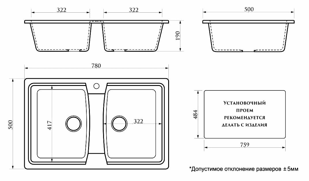 Ширина мойки