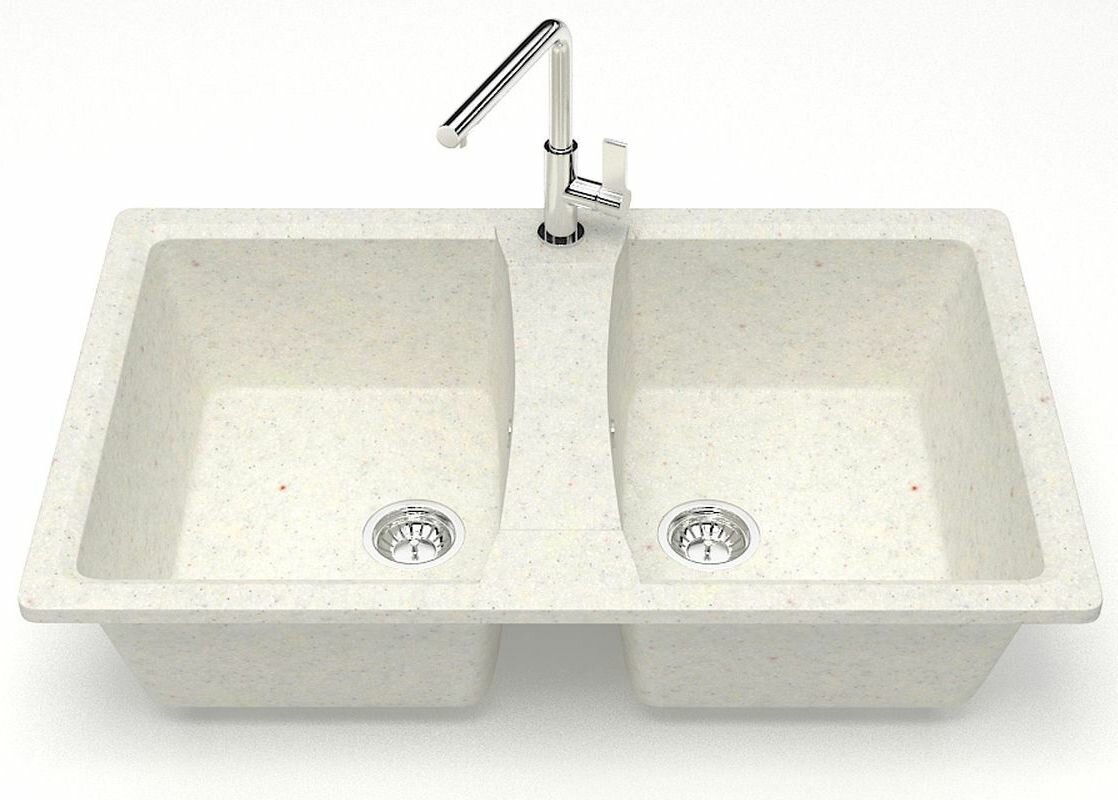 Кухонная мойка AZARIO Elmas 780х500х190 двойная, искусственный мрамор, цвет хлопок (CS00079898): сравнение цен, характеристики, фото, актуальное наличие и цены.