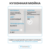 Кухонная мойка Blanco Metra 45S Compact 519581 Кофе искусственный камень встраиваемая сверху, встраиваемая снизу 68