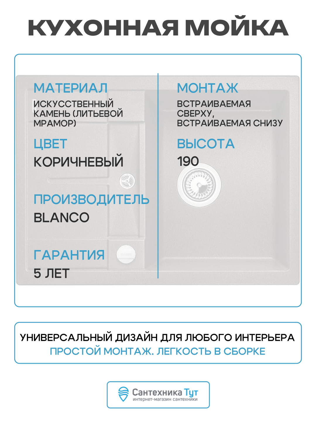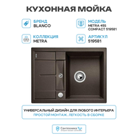 Купить Кухонная мойка Blanco Metra 45S Compact 519581 Кофе искусственный камень встраиваемая сверху, встраиваемая снизу 68 с доставкой по всей России.
