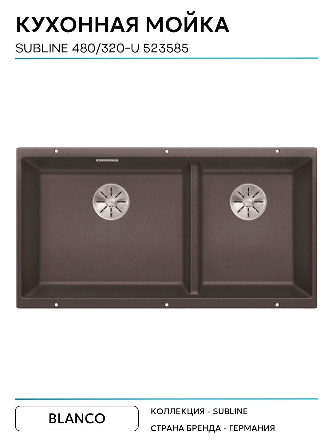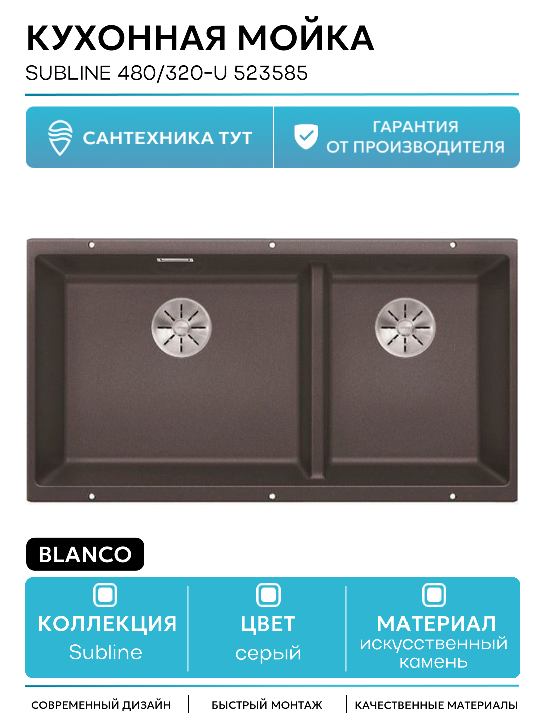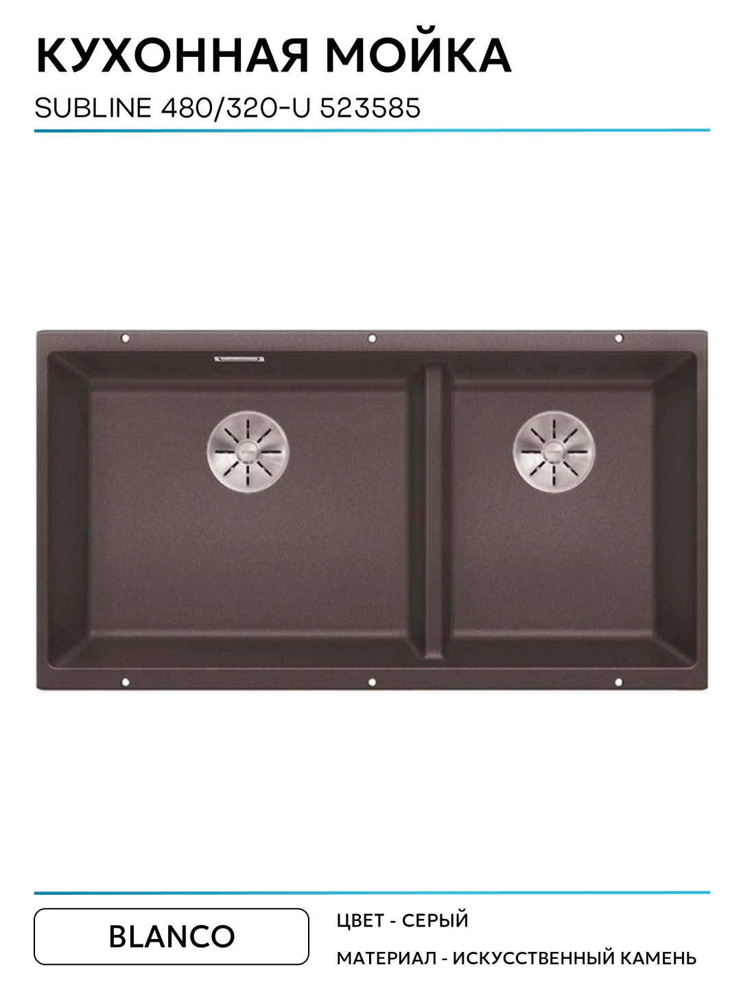 Кухонная мойка Blanco Subline 480/320-U 523585 Темная скала искусственный камень встраиваемый 85.5 Германия: сравнение цен, характеристики, фото, актуальное наличие и цены.