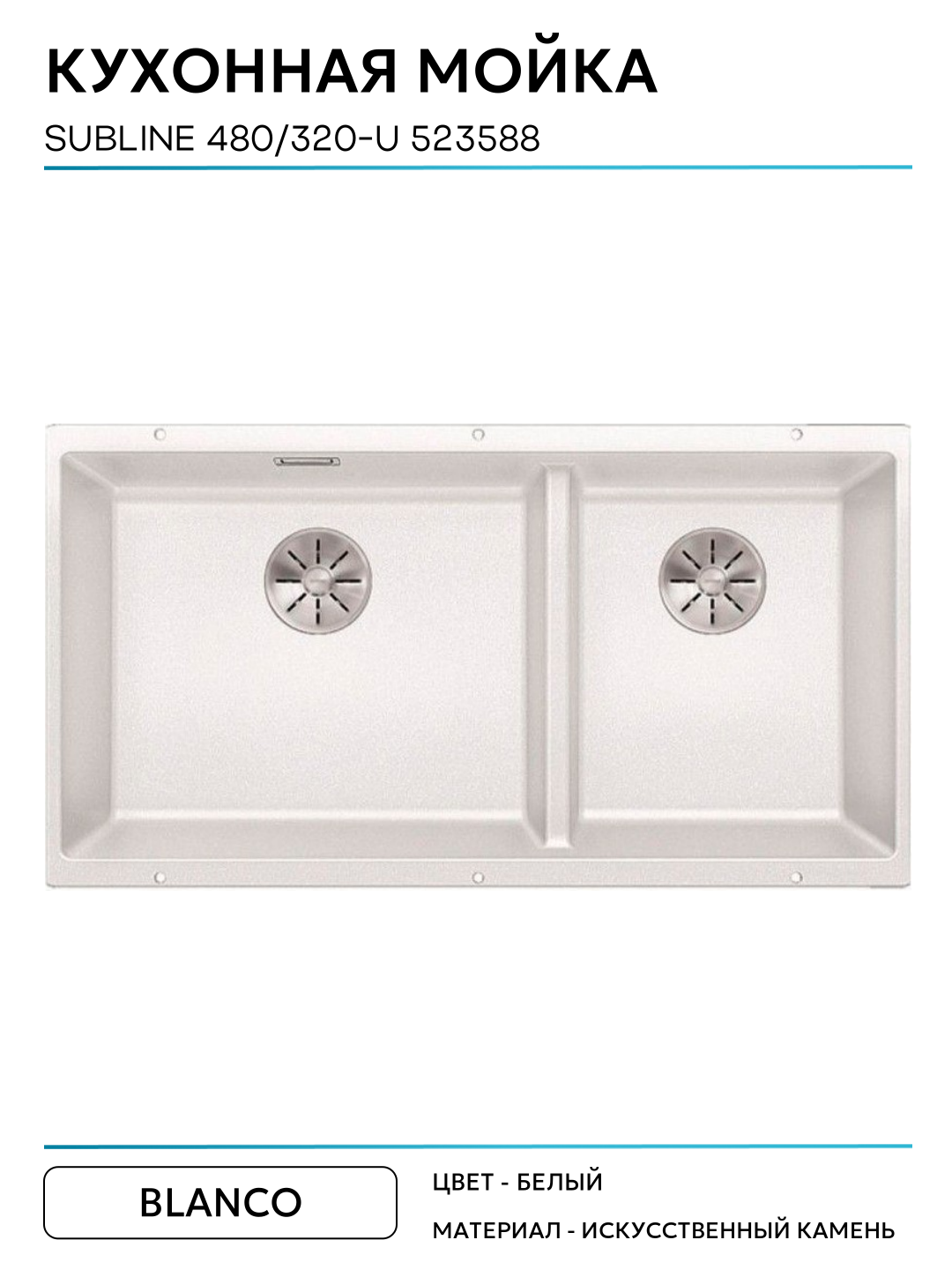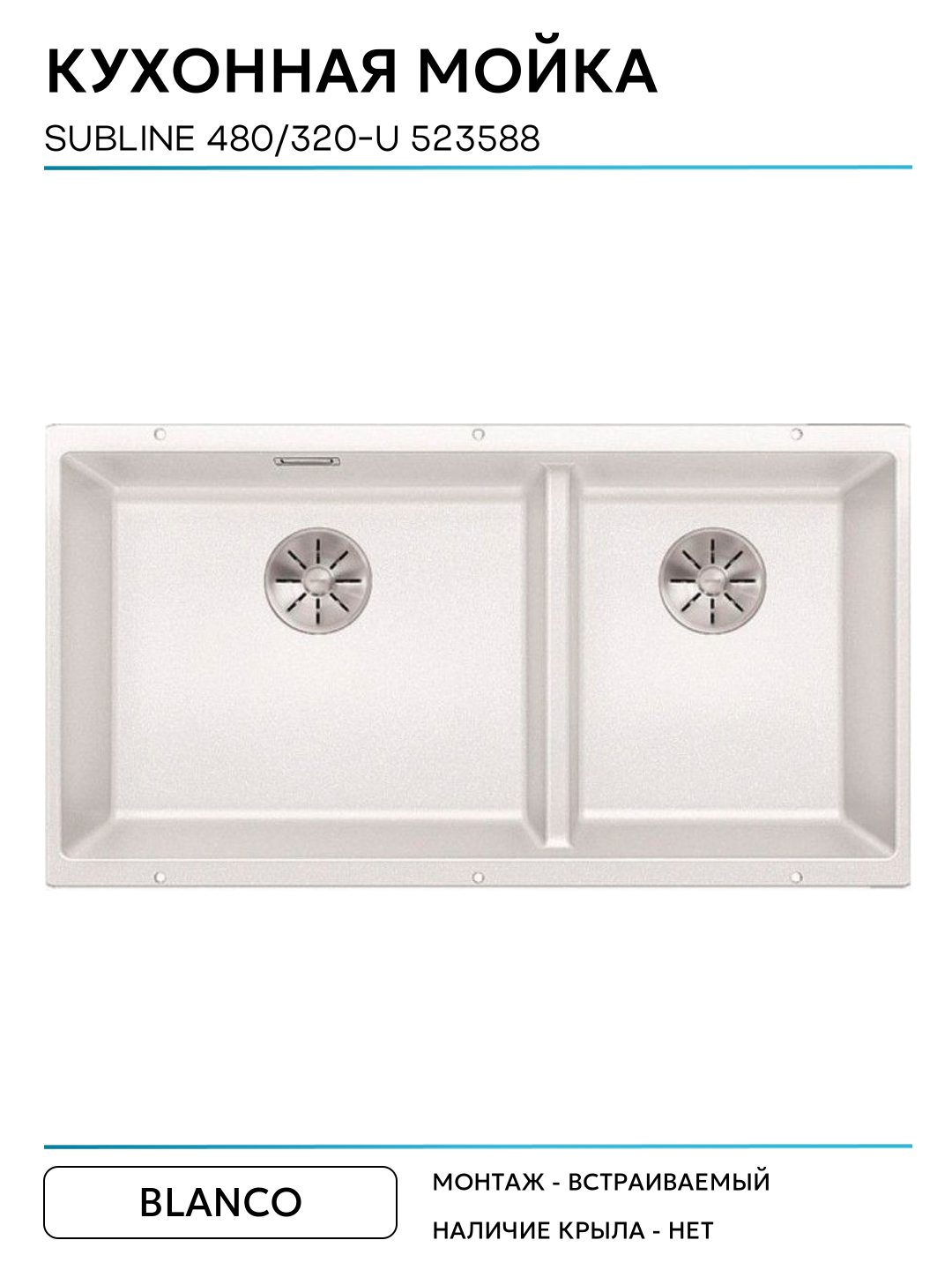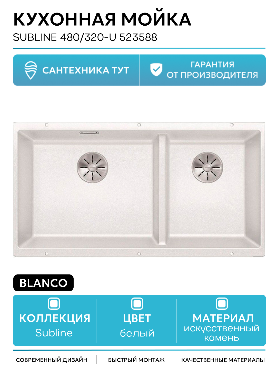 Купить Кухонная мойка Blanco Subline 480/320-U 523588 Белый, современный стиль с доставкой по всей России. Кухонная мойка Blanco Subline 480/320-U 523588 Белый, современный стиль: сравнение цен, характеристики, фото, актуальное наличие и цены.