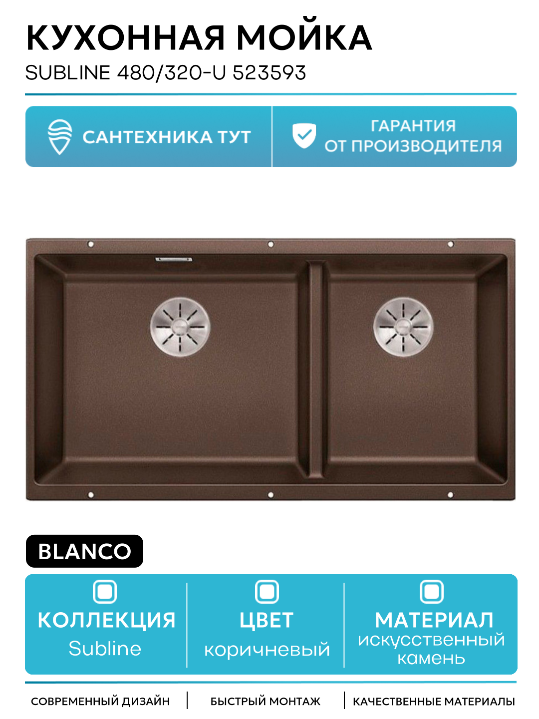 Купить Кухонная мойка Blanco Subline 480/320-U 523593 Кофе, современный стиль с доставкой по всей России. Кухонная мойка Blanco Subline 480/320-U 523593 Кофе, современный стиль: сравнение цен, характеристики, фото, актуальное наличие и цены.