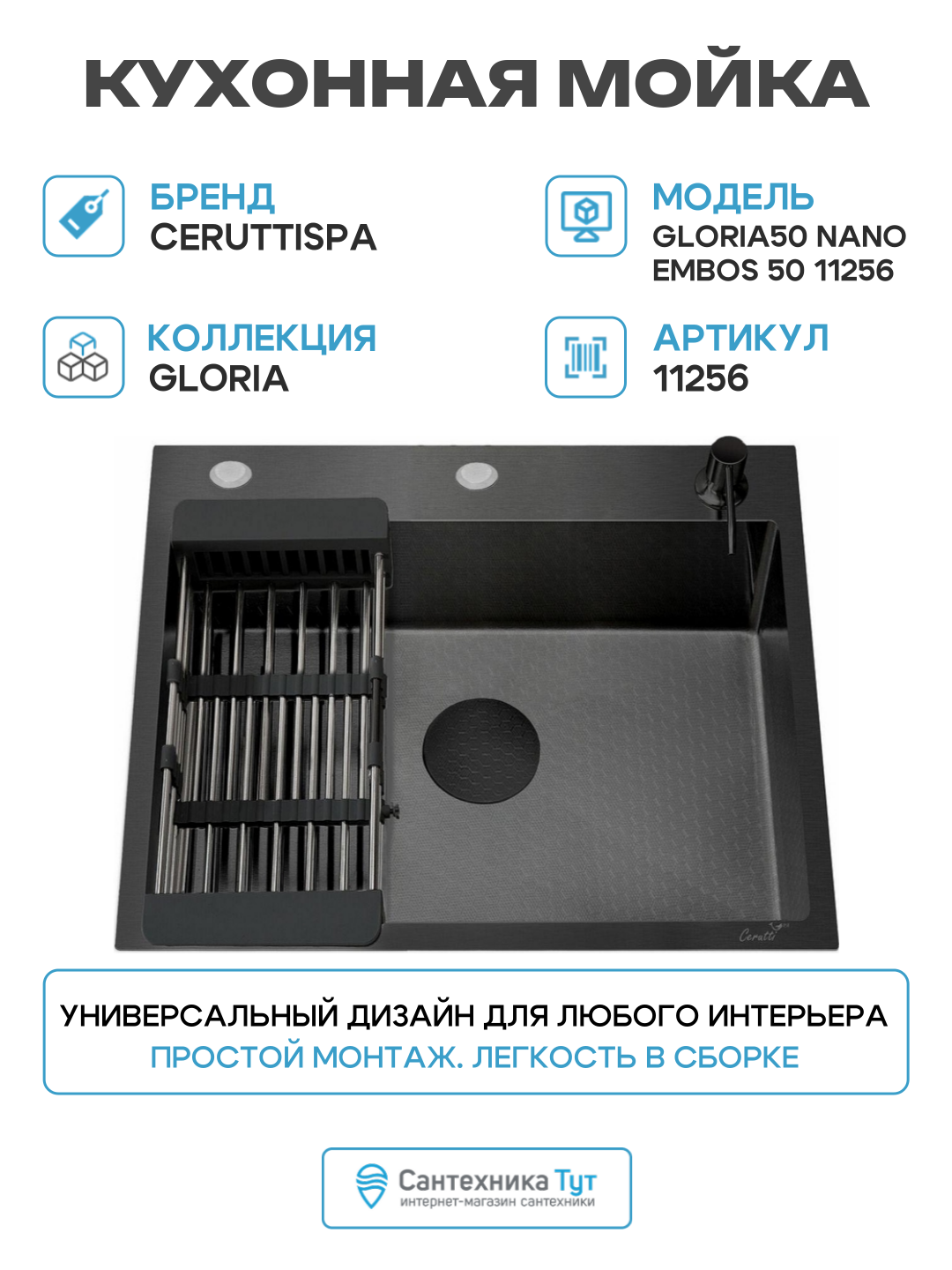 Купить Кухонная мойка Ceruttispa Gloria50 nano embos 50 11256 цвет Графит с доставкой по всей России. Кухонная мойка Ceruttispa Gloria50 nano embos 50 11256 цвет Графит: сравнение цен, характеристики, фото, актуальное наличие и цены.