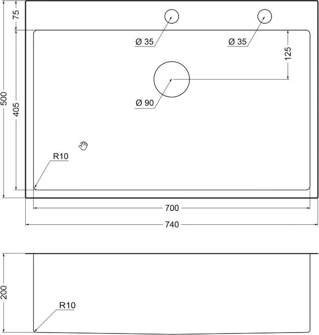 EMAR EMB-125А, тип исполнения мойки одна чаша. Дизайнерская мойка имеет размеры 740 x 500 мм и R5 радиус закругления с внешней стороны. Внутренние углы с R10 радиусом закругления. Мойка EMAR EMB-125А мойка из нержавеющей стали с различной поверхностью (вариант покрытия указан в карточке при выборе товара). В карточке товара можно выбрать вариант товара.