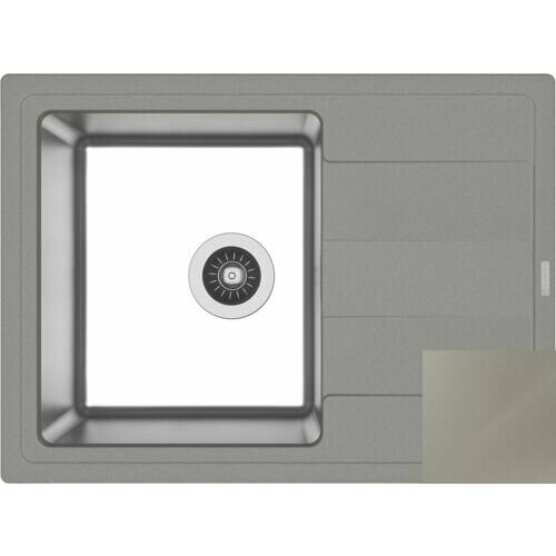 Материал столешницы мойки - кварцевый композит; Материал чаши мойки - нержавеющая сталь марки AISI 304, толщина 1 мм Габариты изделия (ДхГхВ): 650х480х235 мм В комплект входит отводная арматура с выпуском 3 ½ ” (D=90 мм) и переливом, набор крепежей, трафарет; Модель оборачиваемая. вес брутто 10.7 кг