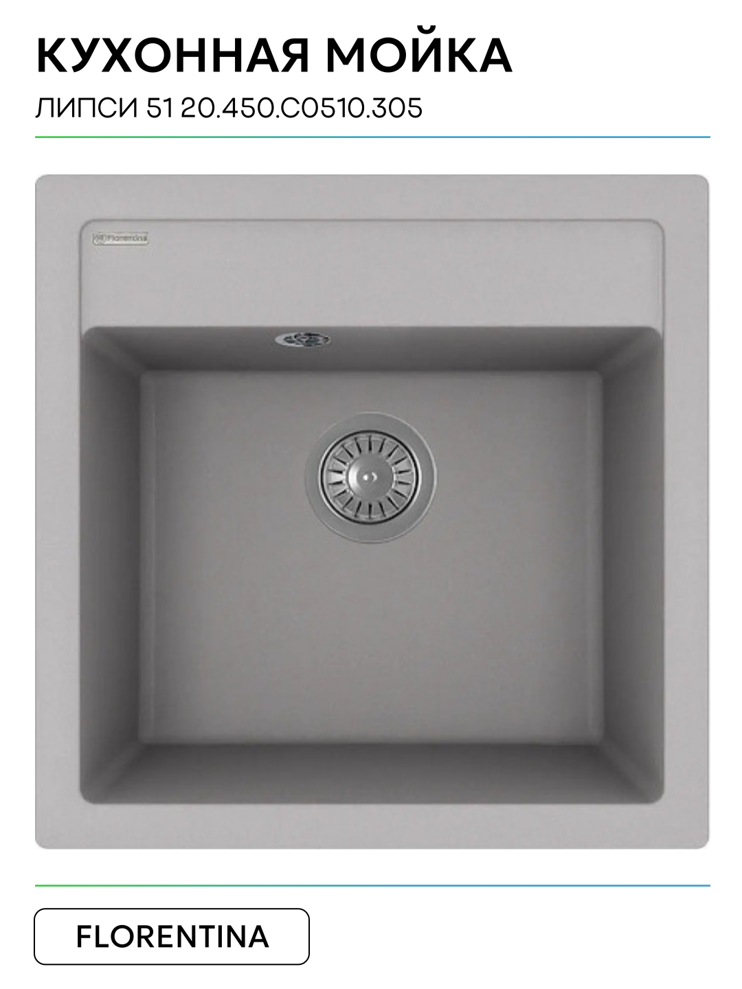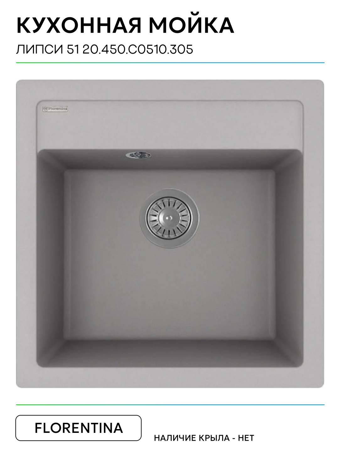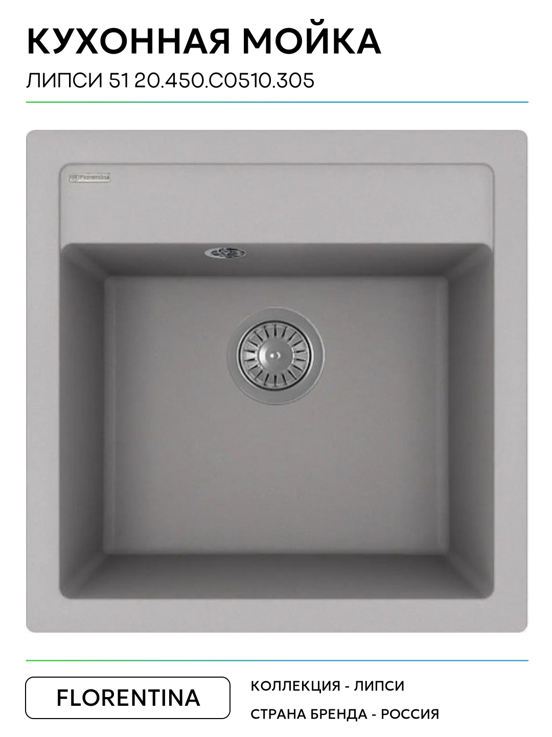 Купить Кухонная мойка Florentina Липси 51 20.450. C0510.305 цвет Грей 510 Россия с доставкой по всей России. Кухонная мойка Florentina Липси 51 20.450. C0510.305 цвет Грей 510 Россия: сравнение цен, характеристики, фото, актуальное наличие и цены.