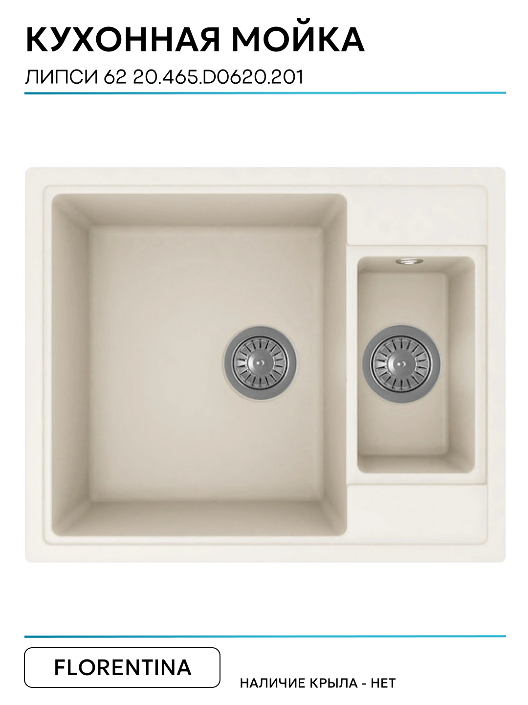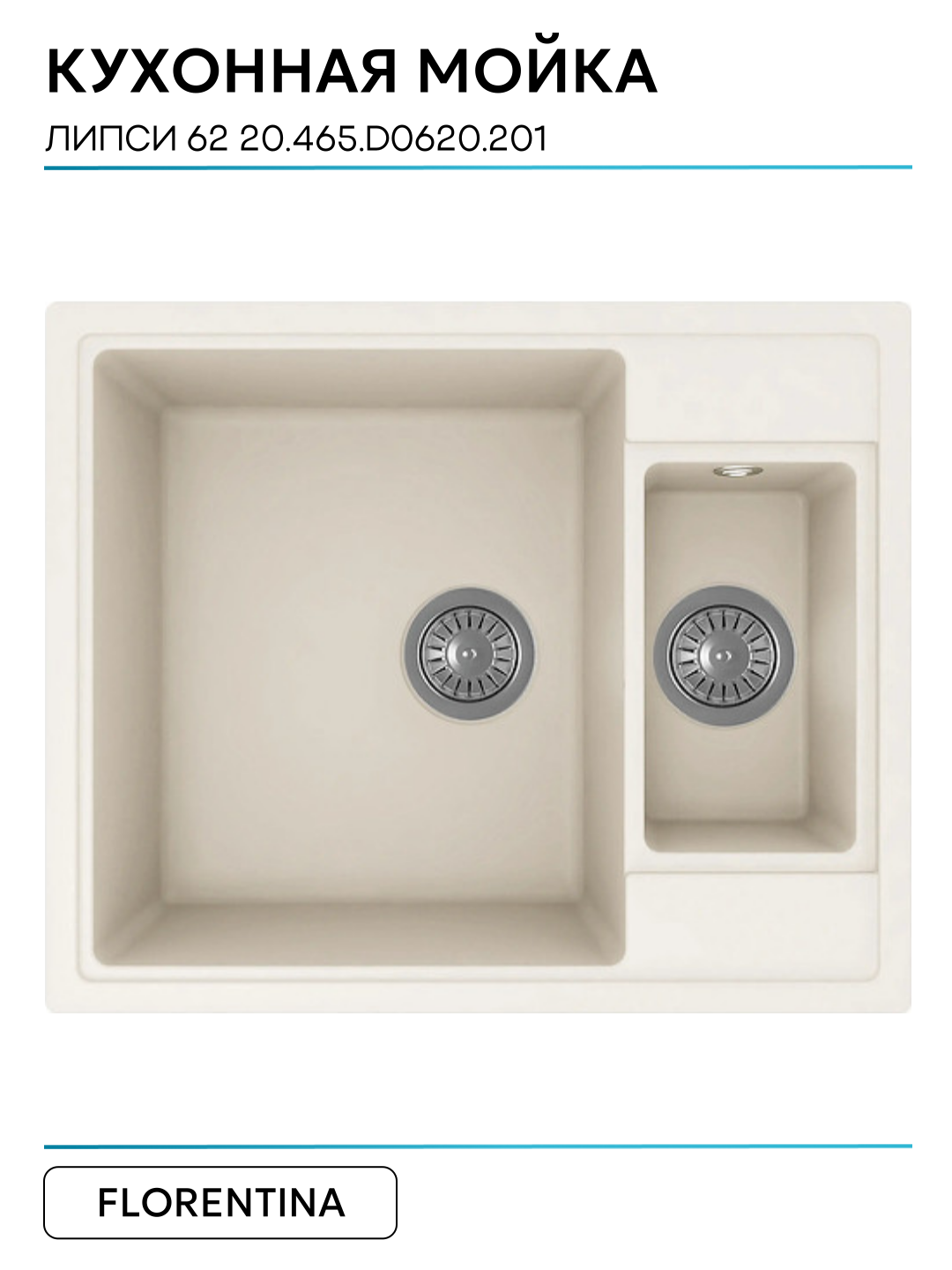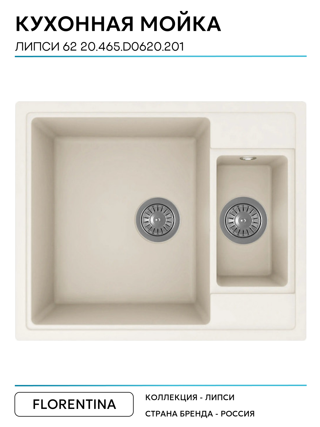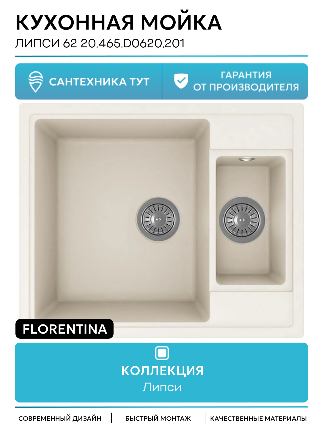 Купить Кухонная мойка Florentina Липси 62 20.465. D0620.201 цвет Жасмин с доставкой по всей России. Кухонная мойка Florentina Липси 62 20.465. D0620.201 цвет Жасмин: сравнение цен, характеристики, фото, актуальное наличие и цены.