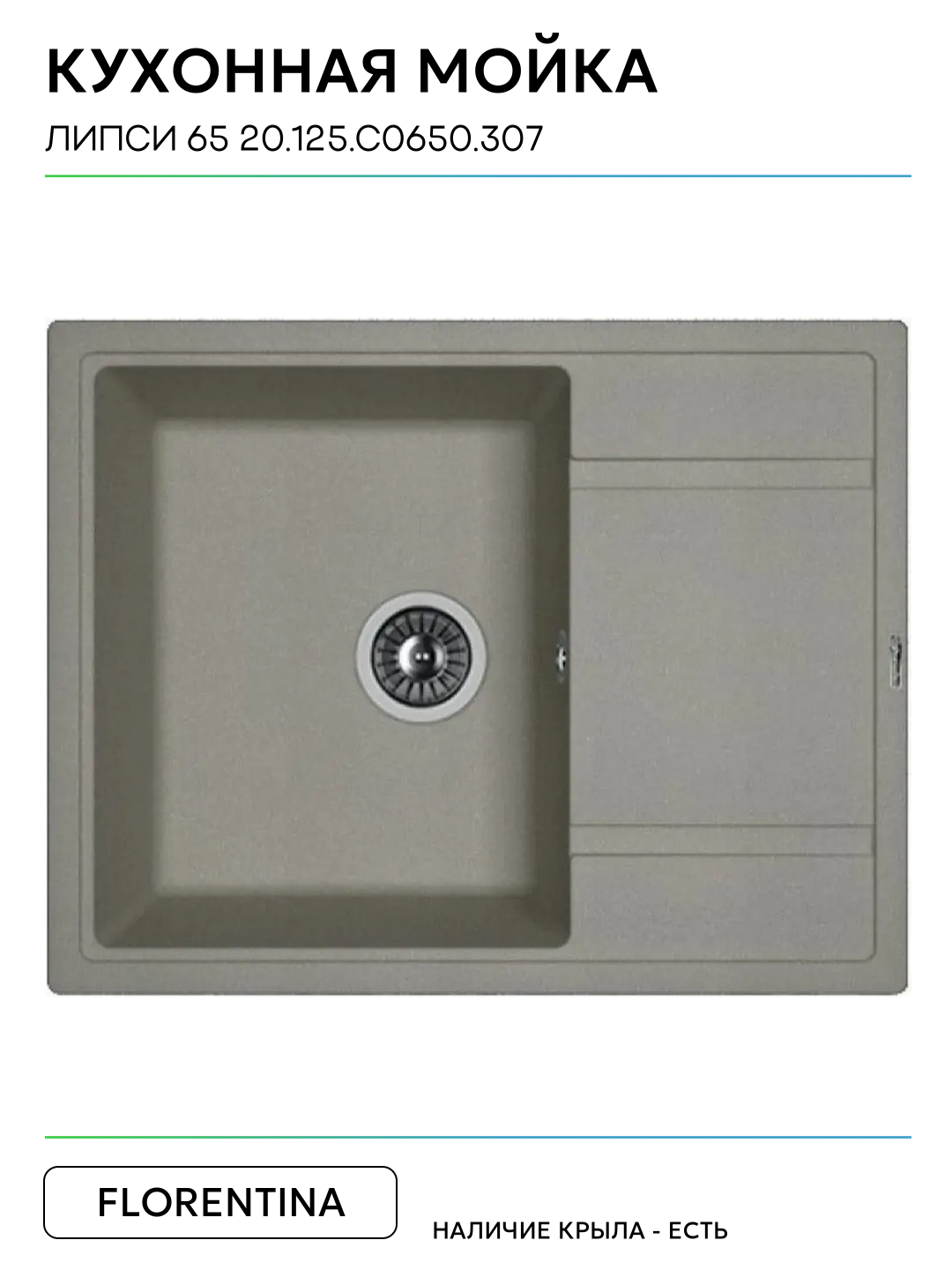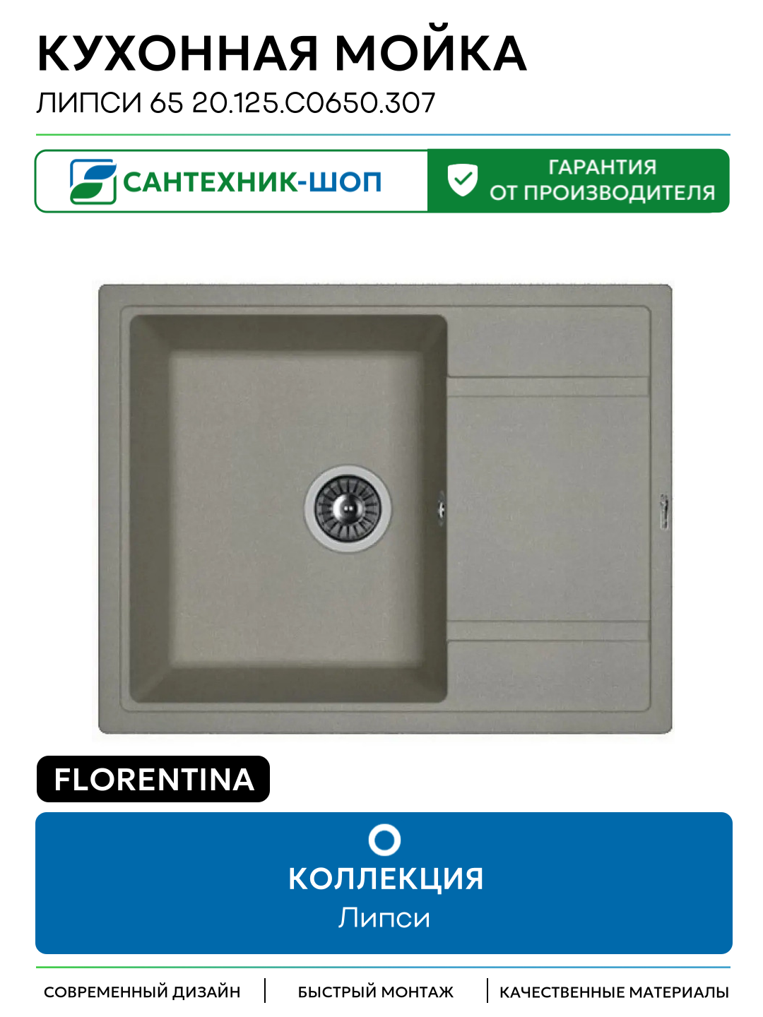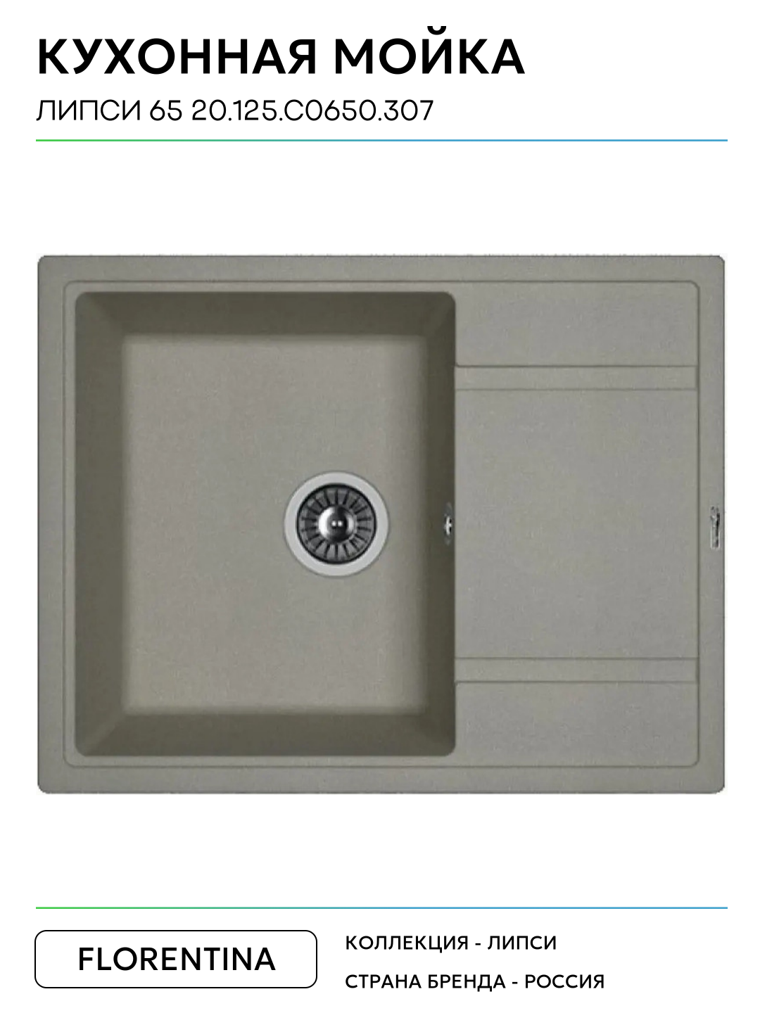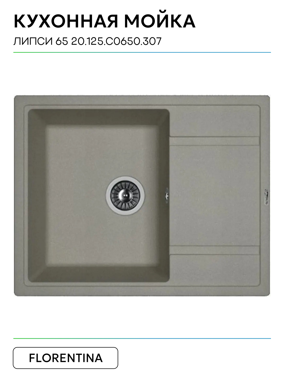 Кухонная мойка Florentina Липси 65 20.125. C0650.307 цвет Серый шёлк 650 Россия: сравнение цен, характеристики, фото, актуальное наличие и цены.