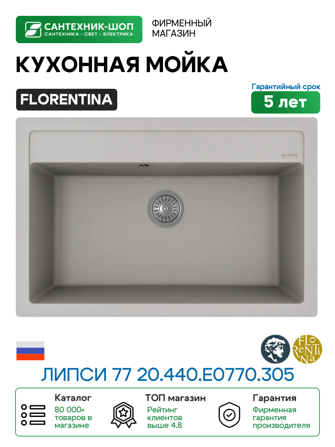 Купить Кухонная мойка Florentina Липси 77 20.440. E0770.305 цвет Грей с доставкой по всей России.
