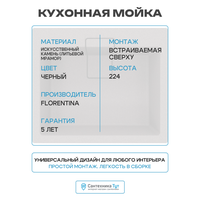 Кухонная мойка Florentina Ривьера-600 20.490. D0600.102 Черная искусственный камень встраиваемый 60 Россия
