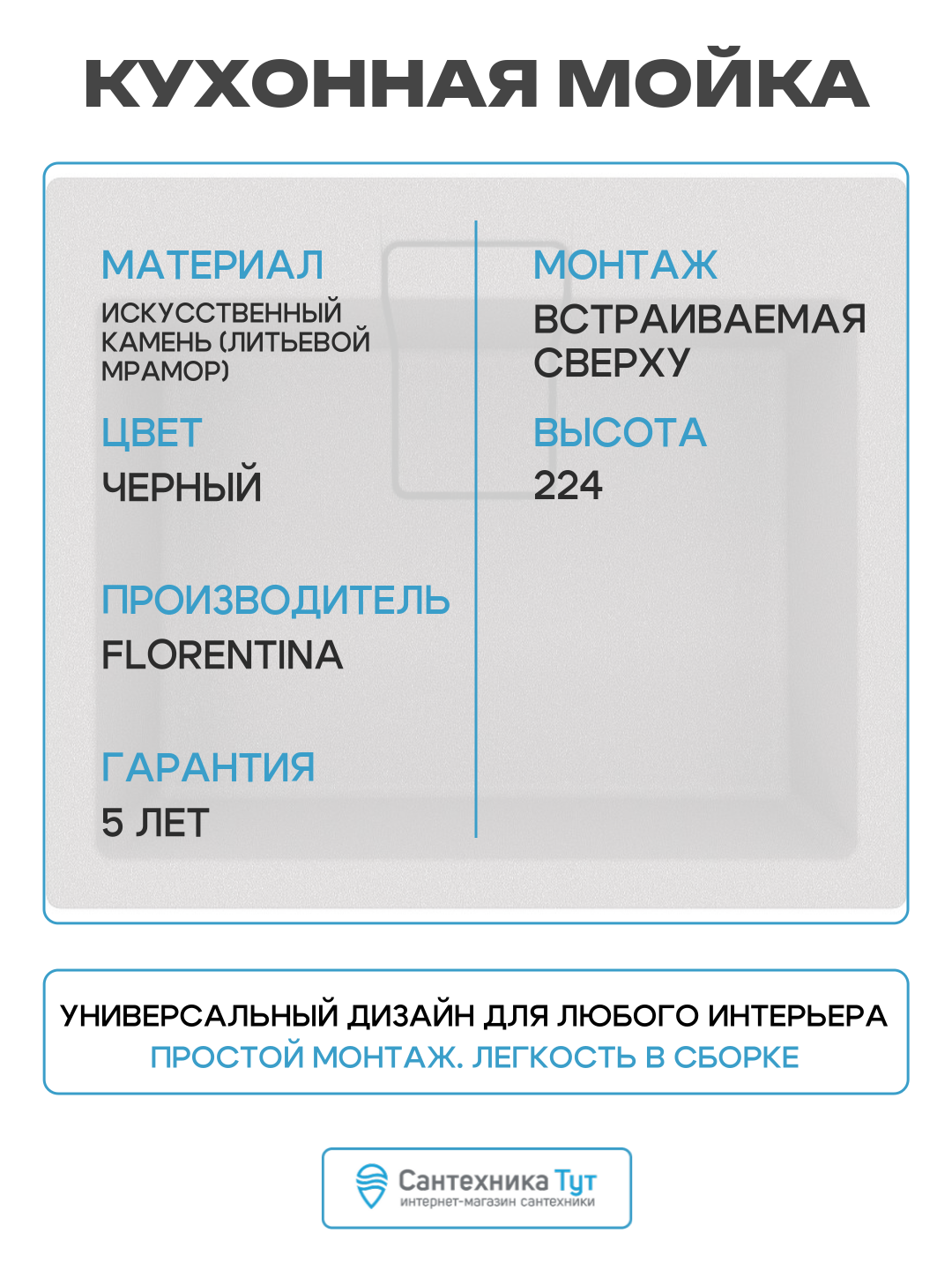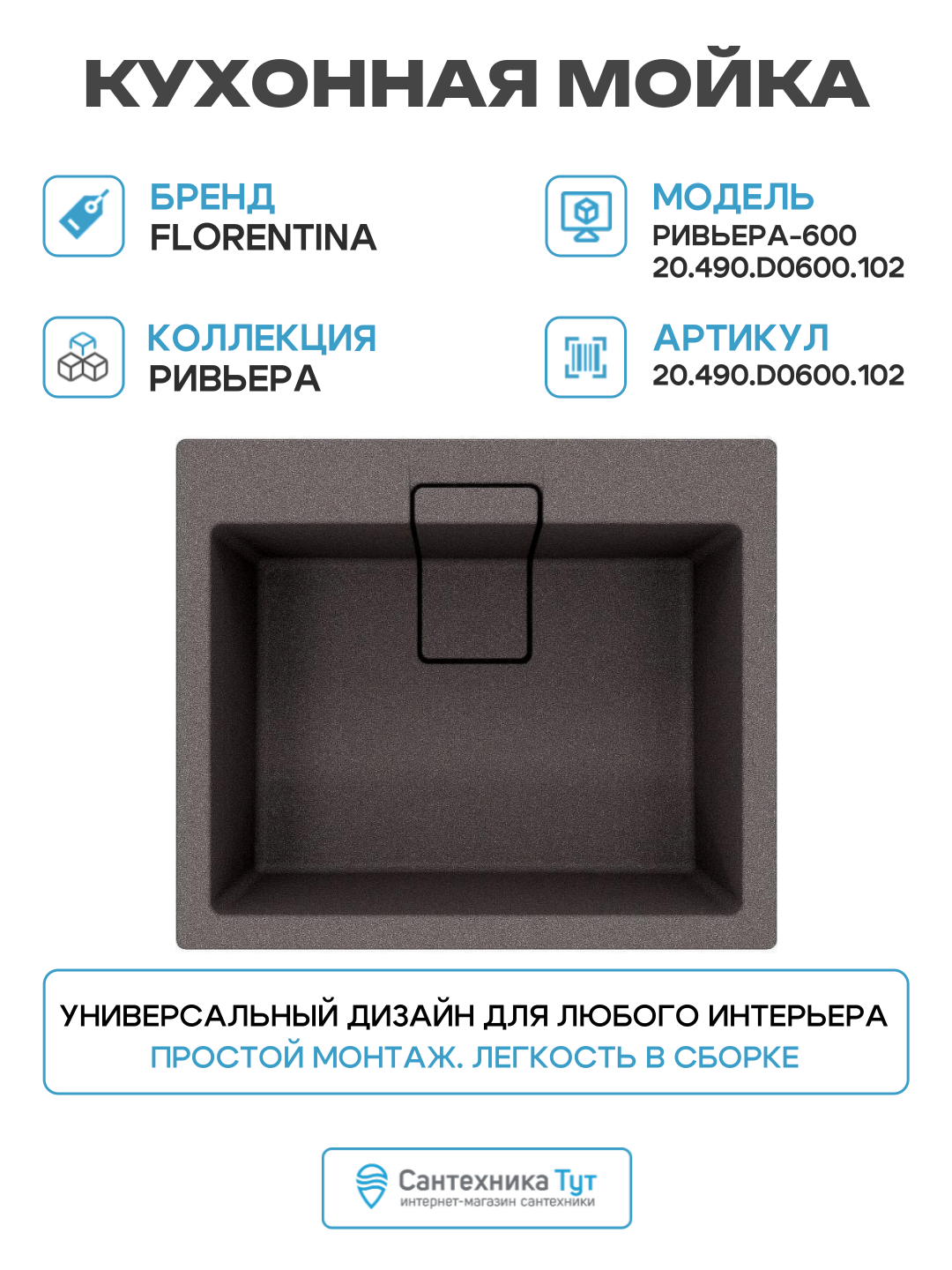 Кухонная мойка Florentina Ривьера-600 20.490. D0600.102 Черная искусственный камень встраиваемый 60 Россия: сравнение цен, характеристики, фото, актуальное наличие и цены.