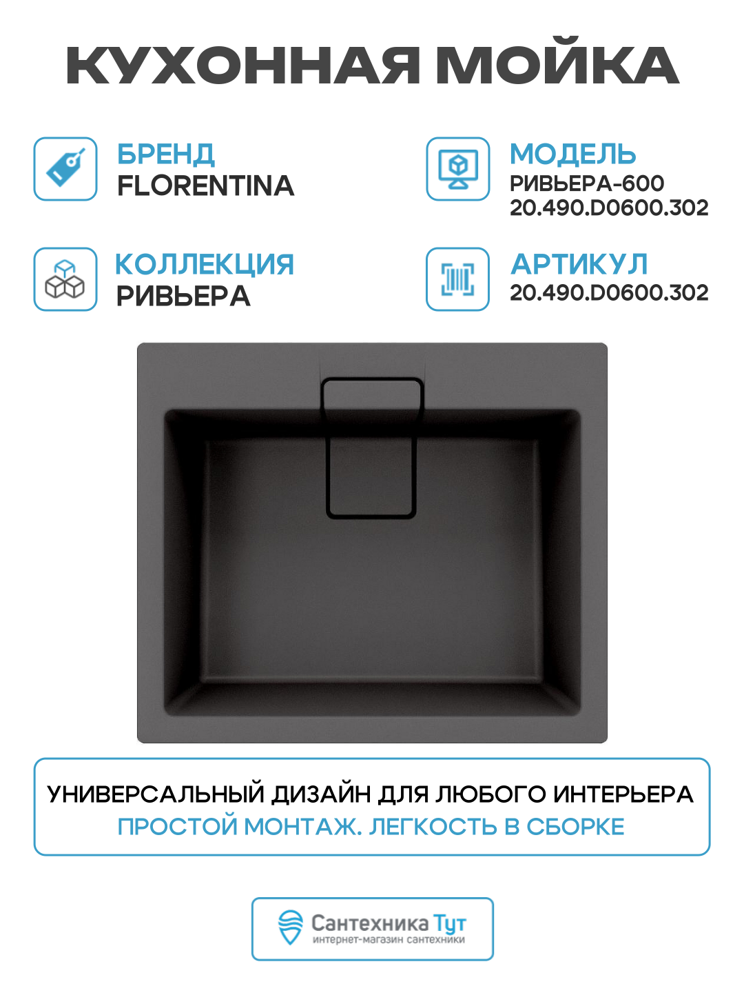 Купить Кухонная мойка Florentina Ривьера-600 20.490. D0600.302 Антрацит Прямоугольная Встраиваемый сверху с доставкой по всей России. Кухонная мойка Florentina Ривьера-600 20.490. D0600.302 Антрацит Прямоугольная Встраиваемый сверху: сравнение цен, характеристики, фото, актуальное наличие и цены.