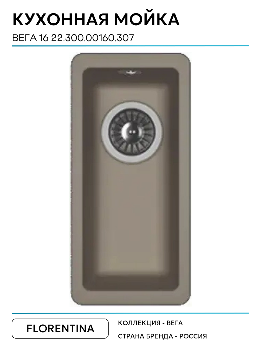 Купить Кухонная мойка Florentina Вега 16 22.300.00160.307 цвет Серый шёлк с доставкой по всей России. Кухонная мойка Florentina Вега 16 22.300.00160.307 цвет Серый шёлк: сравнение цен, характеристики, фото, актуальное наличие и цены.