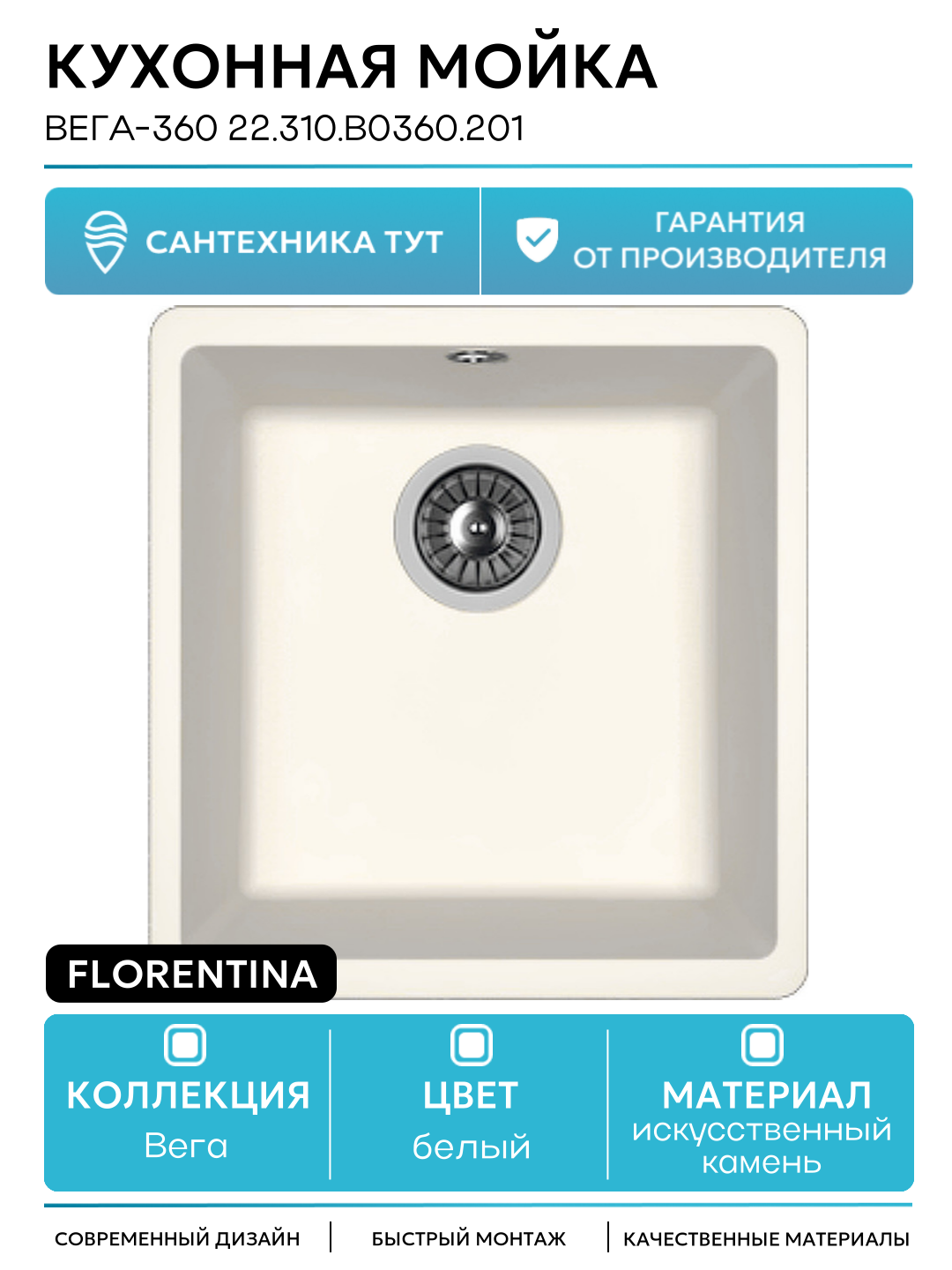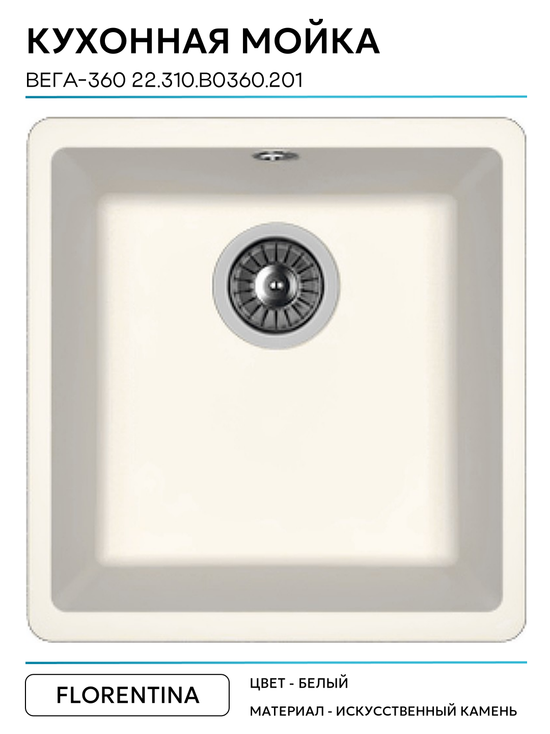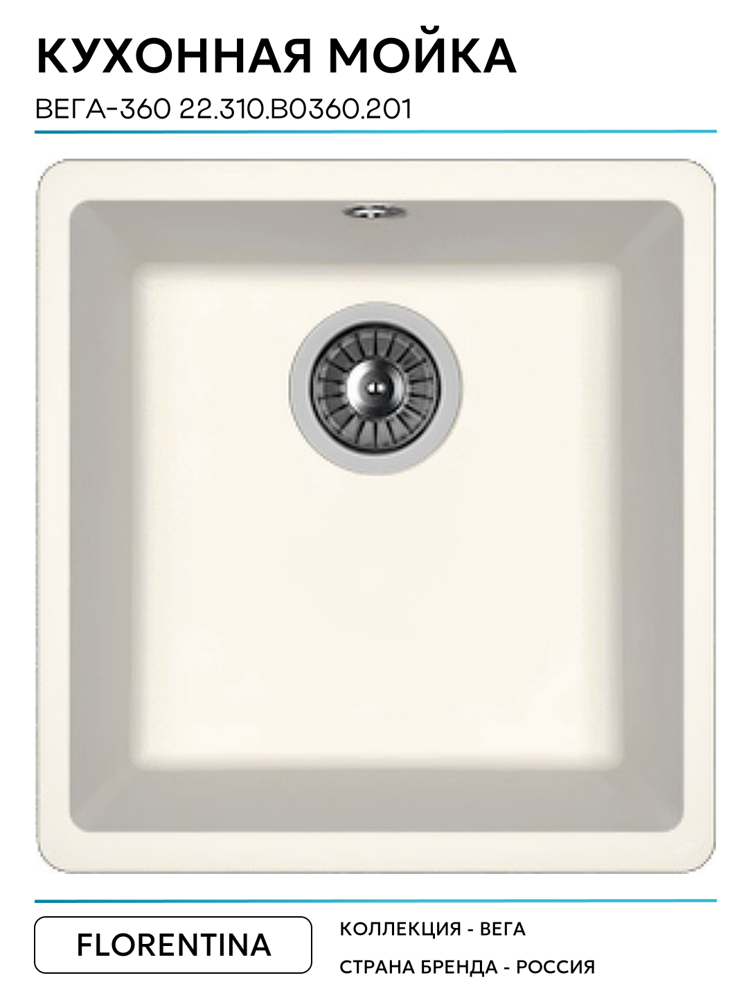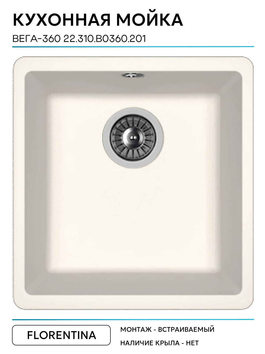 Кухонная мойка Florentina Вега-360 22.310. B0360.201 Жасмин искусственный камень встраиваемый 40 Россия: сравнение цен, характеристики, фото, актуальное наличие и цены.