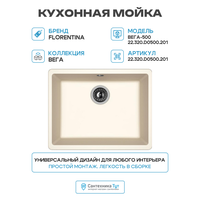 Купить Кухонная мойка Florentina Вега-500 22.320. D0500.201 Жасмин Прямоугольная Встраиваемый снизу с доставкой по всей России.