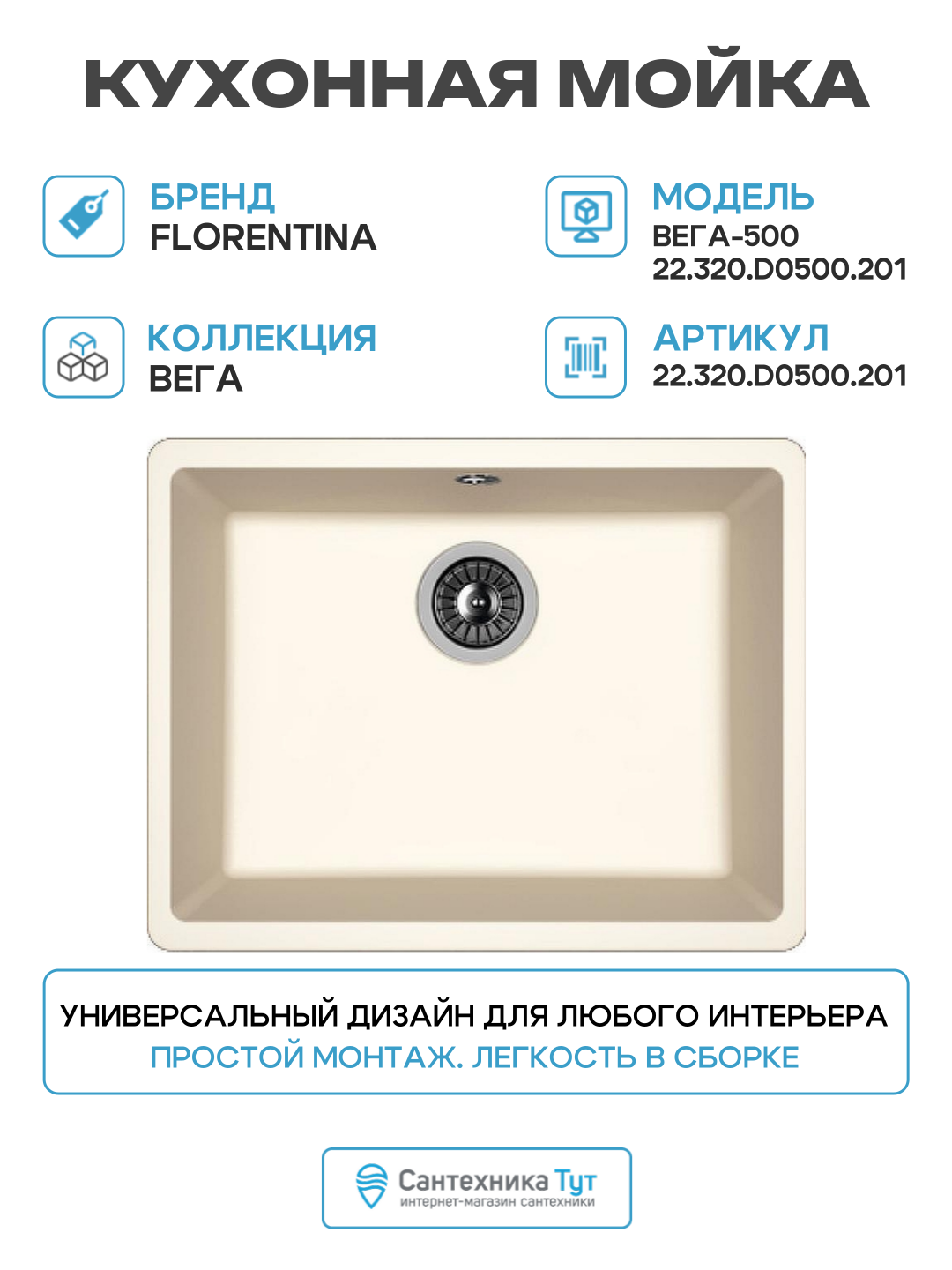 Кухонная мойка Florentina Вега-500 22.320. D0500.201 Жасмин Прямоугольная Встраиваемый снизу: сравнение цен, характеристики, фото, актуальное наличие и цены.