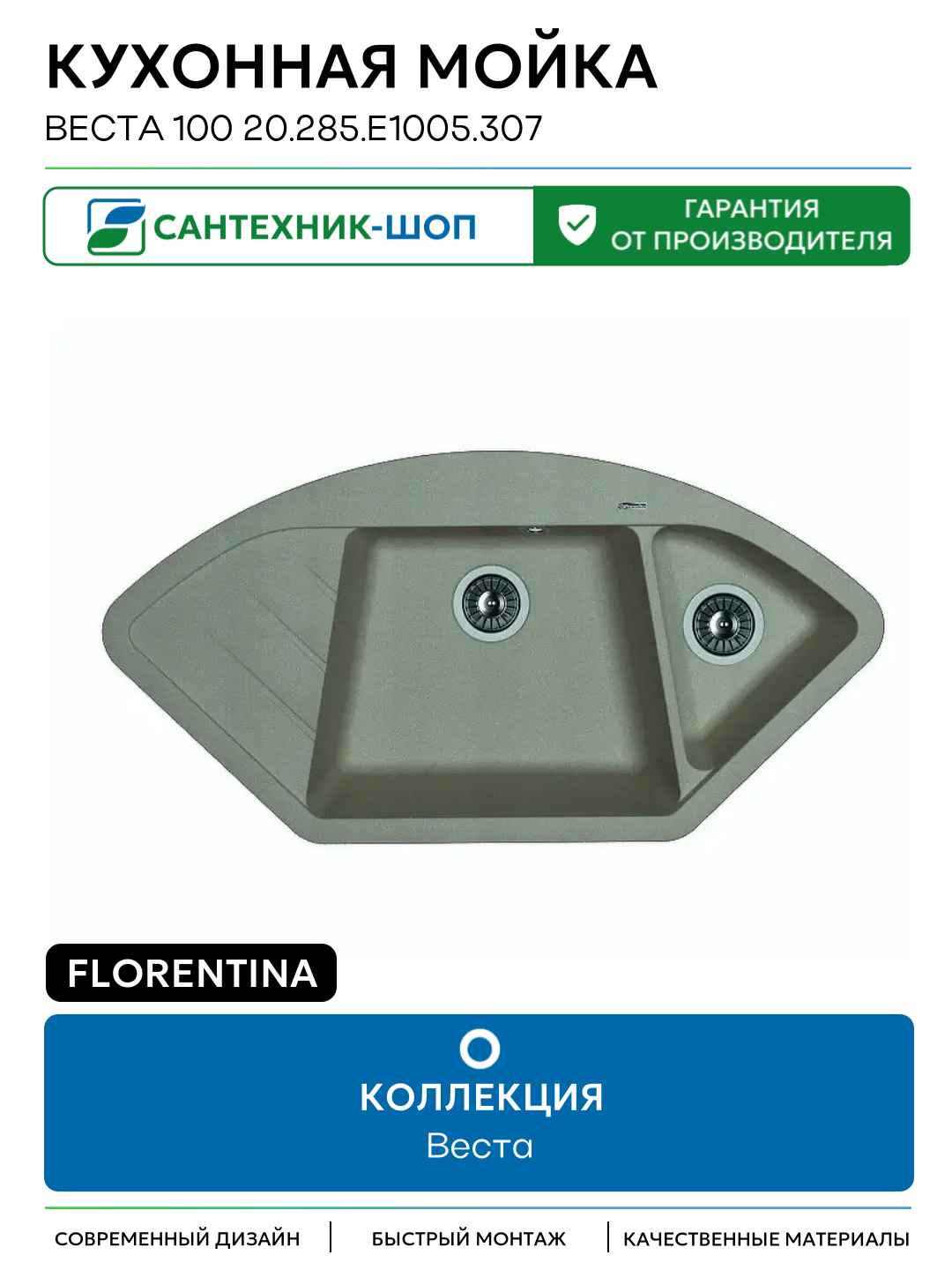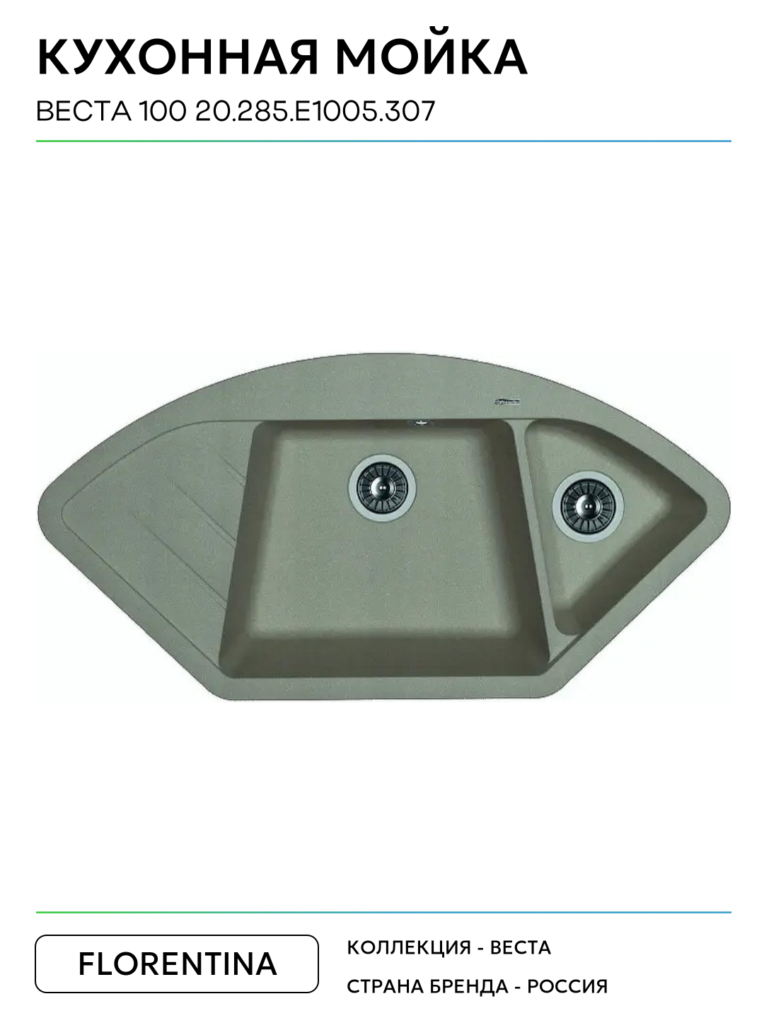 Кухонная мойка Florentina Веста 100 20.285. E1005.307 цвет Серый шёлк 1005 Россия: сравнение цен, характеристики, фото, актуальное наличие и цены.