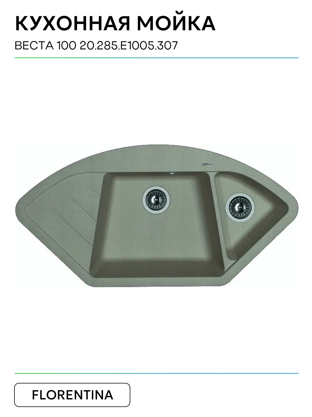 Купить Кухонная мойка Florentina Веста 100 20.285. E1005.307 цвет Серый шёлк 1005 Россия с доставкой по всей России.