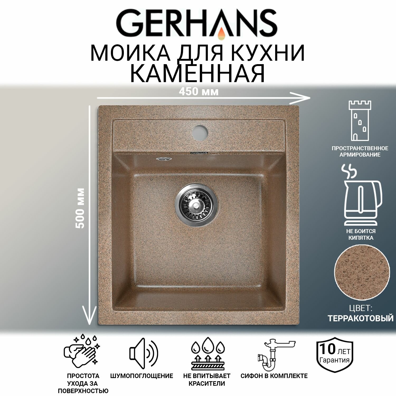 Мойка для кухни Gerhans A45-23 Терракот (Беларусь) 500х450 мм: сравнение цен, характеристики, фото, актуальное наличие и цены.