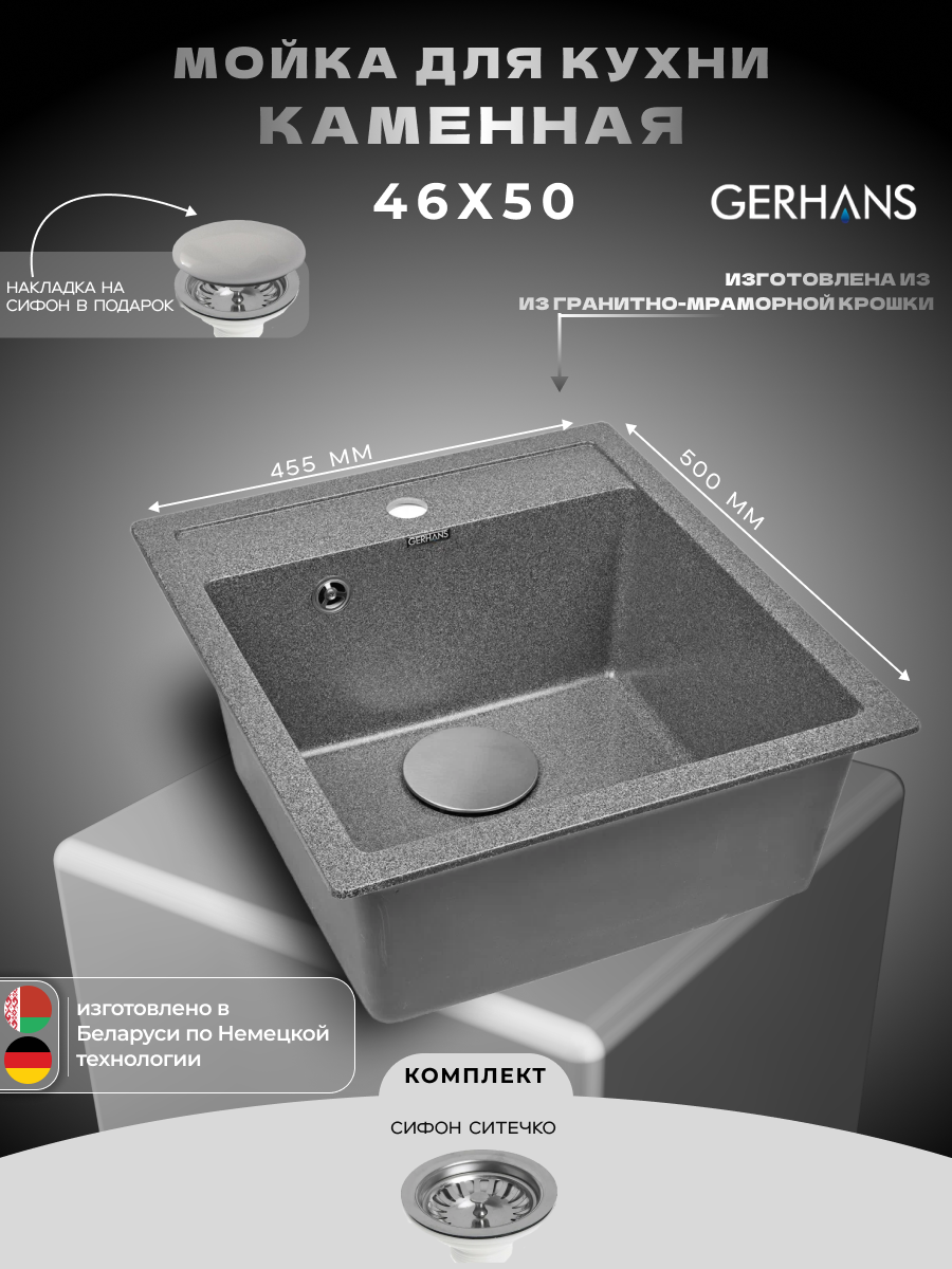 Мойка для кухни Gerhans A45-24 Графит (Беларусь) 500ммх450 мм: сравнение цен, характеристики, фото, актуальное наличие и цены.