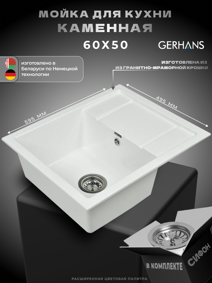 Купить Кухонная мойка Gerhans B 19 18 белый (беларусь) 595х495 мм с доставкой по всей России. Кухонная мойка Gerhans B 19 18 белый (беларусь) 595х495 мм: сравнение цен, характеристики, фото, актуальное наличие и цены.