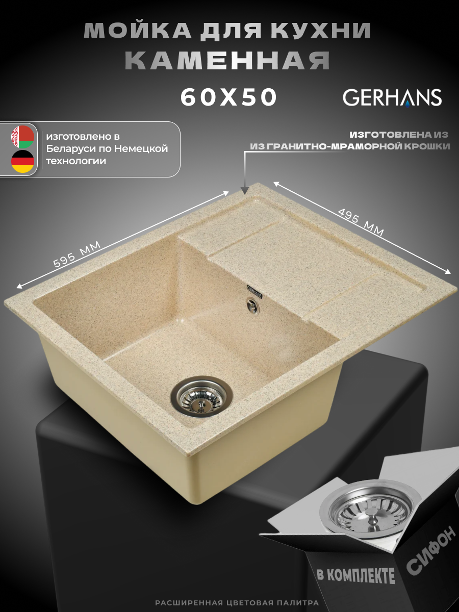 Купить Мойка для кухни Gerhans B19-21 песочная 595х495мм (Беларусь) с доставкой по всей России. Мойка для кухни Gerhans B19-21 песочная 595х495мм (Беларусь): сравнение цен, характеристики, фото, актуальное наличие и цены.