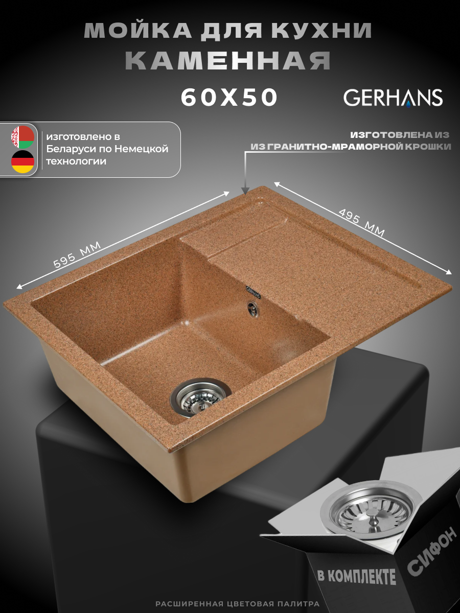 Купить Кухонная мойка Gerhans B 19 23 терракот (беларусь) 595х495 мм с доставкой по всей России. Кухонная мойка Gerhans B 19 23 терракот (беларусь) 595х495 мм: сравнение цен, характеристики, фото, актуальное наличие и цены.