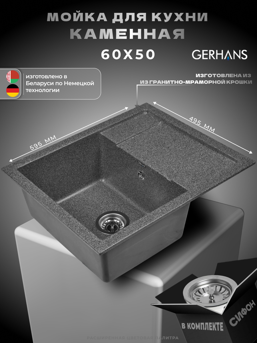 Купить Кухонная мойка Gerhans B 19 24 графит (беларусь) 595х495 мм с доставкой по всей России. Кухонная мойка Gerhans B 19 24 графит (беларусь) 595х495 мм: сравнение цен, характеристики, фото, актуальное наличие и цены.