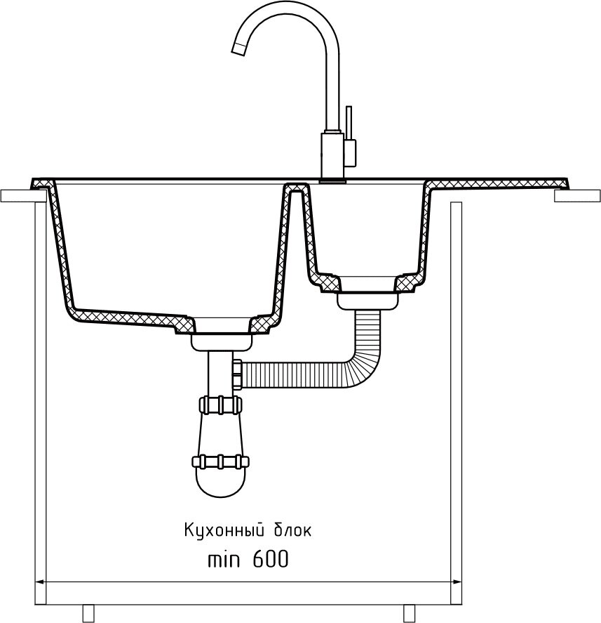 KS-7303U, алюминиум, кухонная мойка, кварц