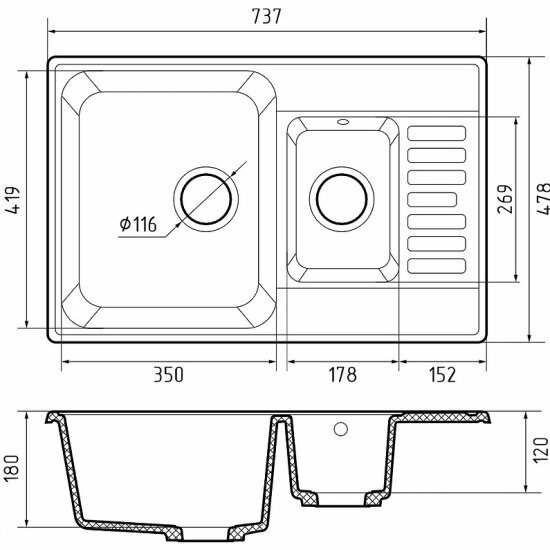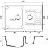 Кухонная мойка Granfest QUARZ 21К 1,5-чаши+крыло 740*480мм песочный арт. GF-Z-: сравнение цен, характеристики, фото, актуальное наличие и цены.