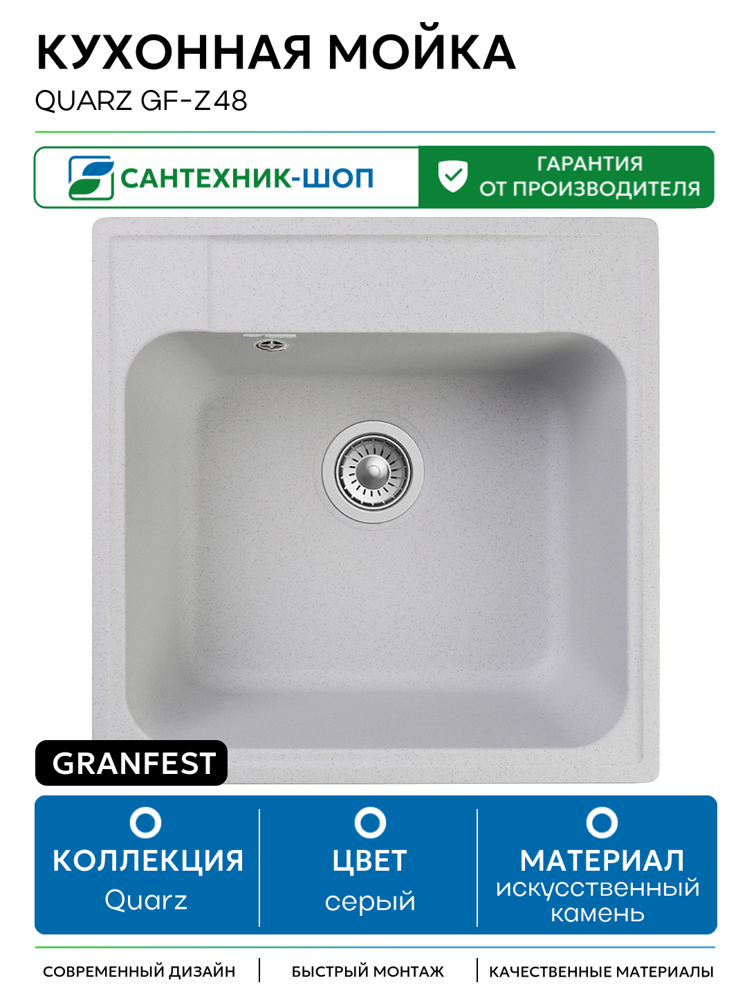 Кухонная мойка GranFest Quarz GF-Z48 искусственный камень встраиваемый 47.8 Россия: сравнение цен, характеристики, фото, актуальное наличие и цены.
