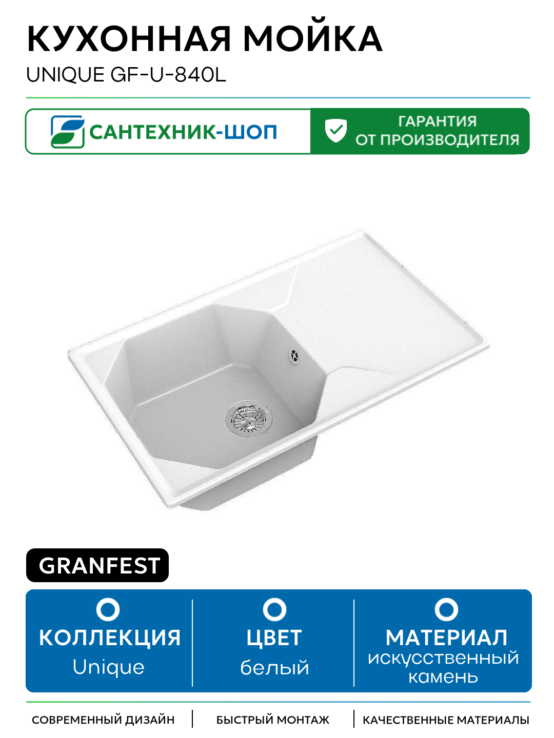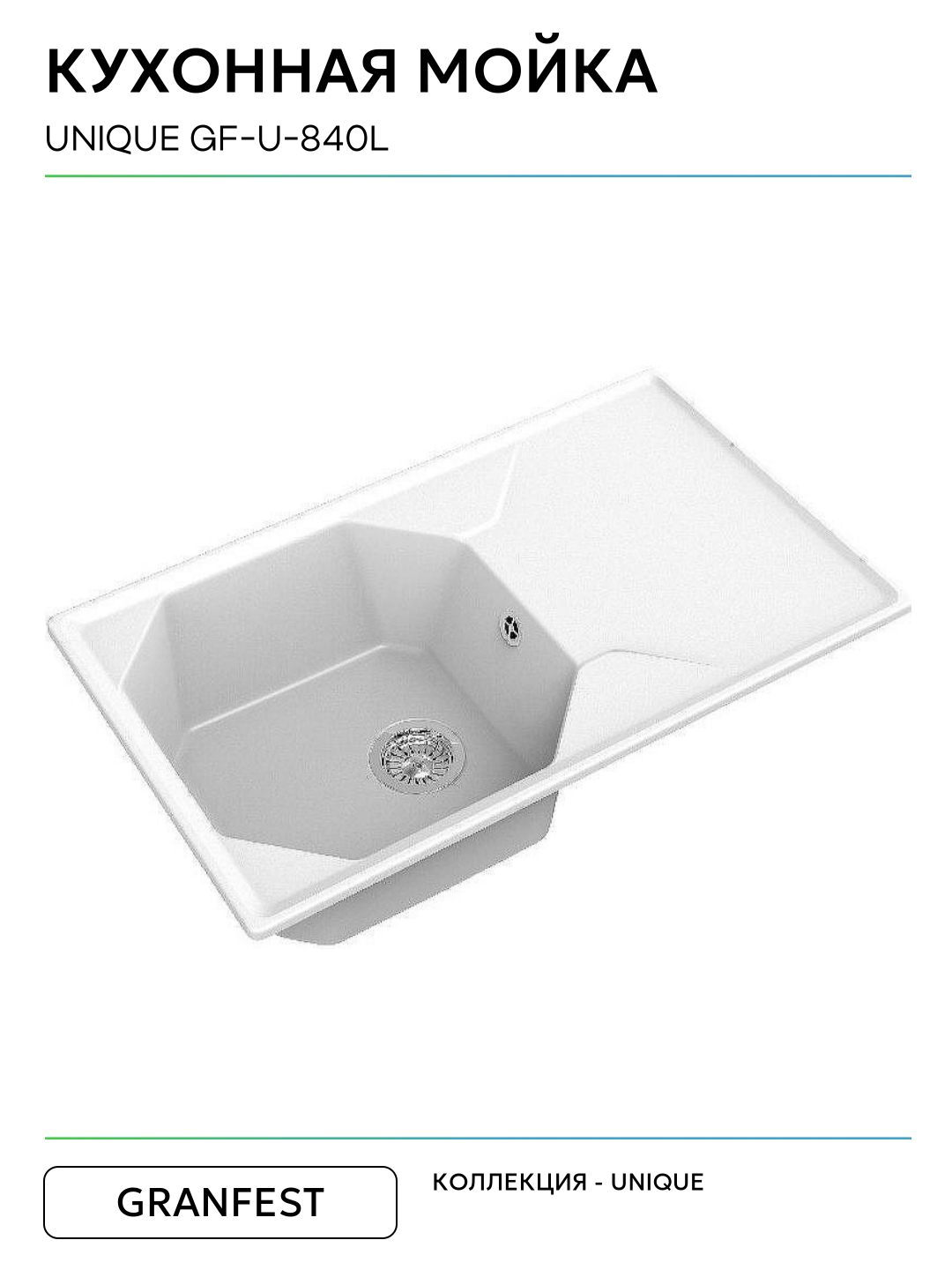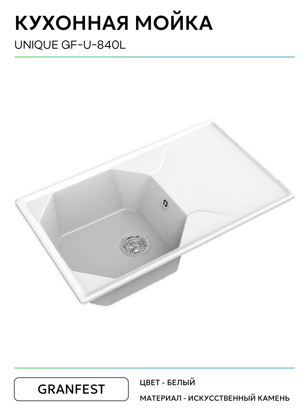 Кухонная мойка GranFest Unique GF-U-840L Иней искусственный камень встраиваемый 840: сравнение цен, характеристики, фото, актуальное наличие и цены.