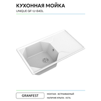 Купить Кухонная мойка GranFest Unique GF-U-840L Иней искусственный камень встраиваемый 840 с доставкой по всей России.