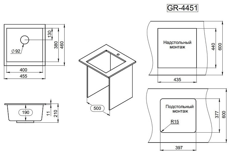Купить Кухонная мойка Granula GR-4451 45.5х46 базальт с доставкой по всей России. Кухонная мойка Granula GR-4451 45.5х46 базальт: сравнение цен, характеристики, фото, актуальное наличие и цены.