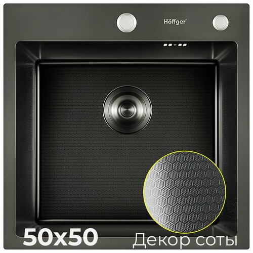 Кухонная мойка Hoffger 5050T Black Eco Графит, 50×50, врезной монтаж, PVD покрытие, декор соты: сравнение цен, характеристики, фото, актуальное наличие и цены.