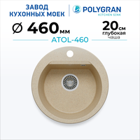 Купить Мойка для кухни каменная POLYGRAN ATOL-460, Серая, Врезная, Круглая (Опал) с доставкой по всей России.