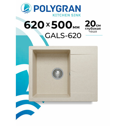 Мойка для кухни каменная бежевая Polygran Gals 620 цвет "Кремовый"