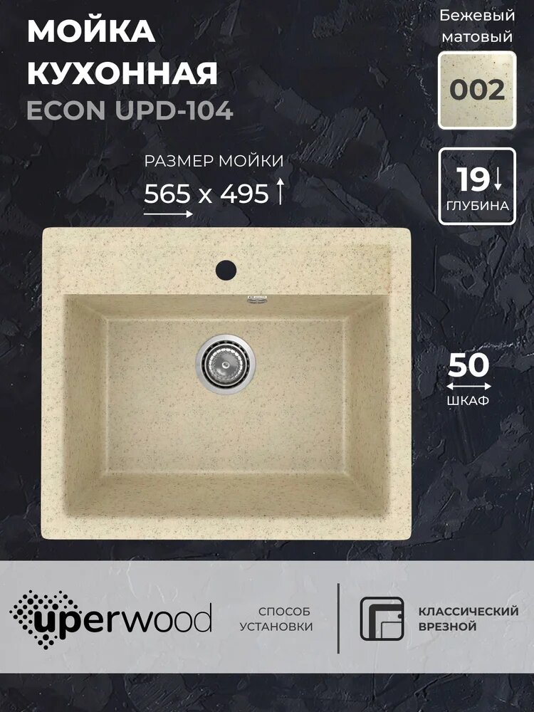 Купить Кухонная мойка из искусственного камня Uperwood ECON UPD-104-002, прямоугольная, бежевая матовая с доставкой по всей России.